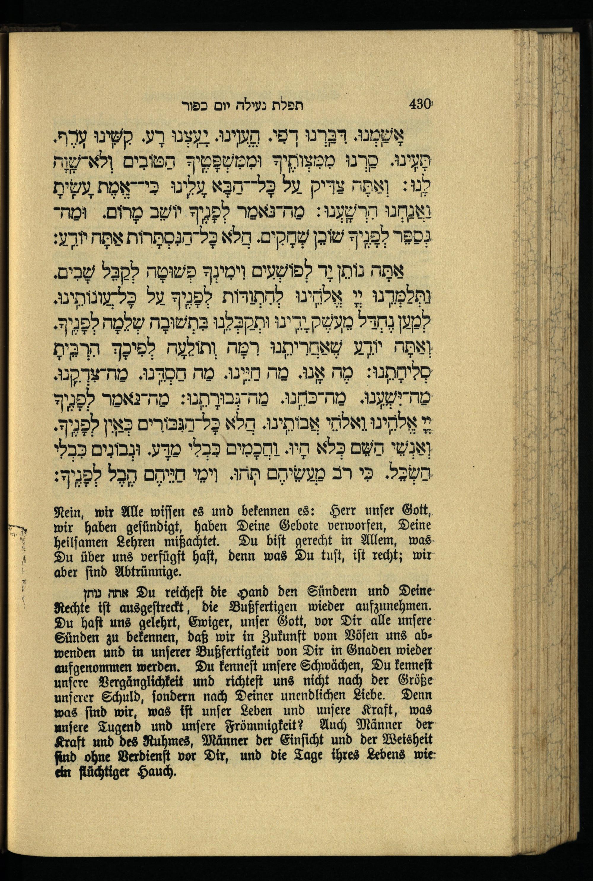 תפילה נעילה ליום כפור Schlußgebet für den Versöhnungstag.