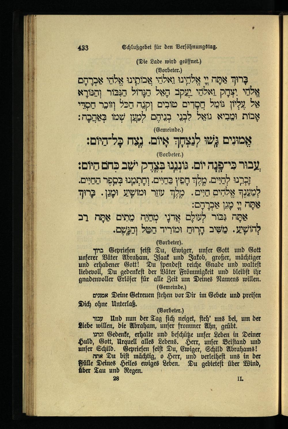 תפילה נעילה ליום כפור Schlußgebet für den Versöhnungstag.