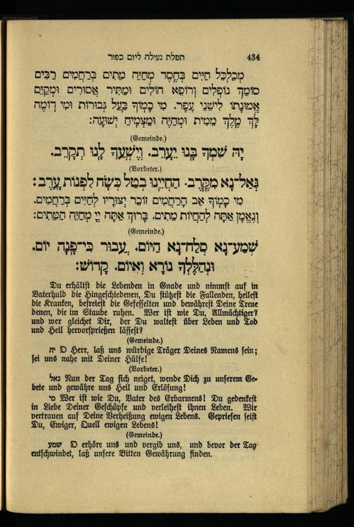 תפילה נעילה ליום כפור Schlußgebet für den Versöhnungstag.