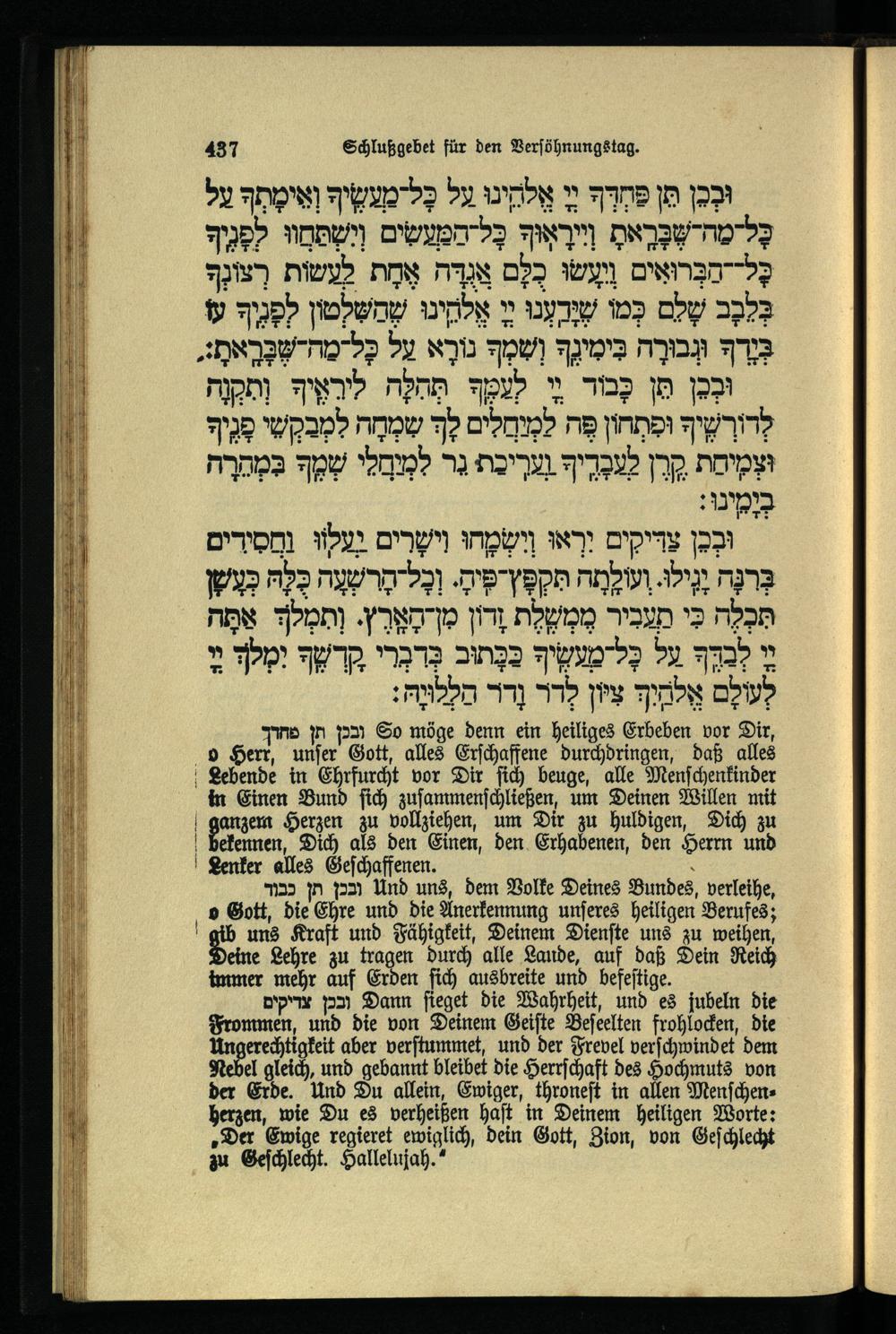 תפילה נעילה ליום כפור Schlußgebet für den Versöhnungstag.