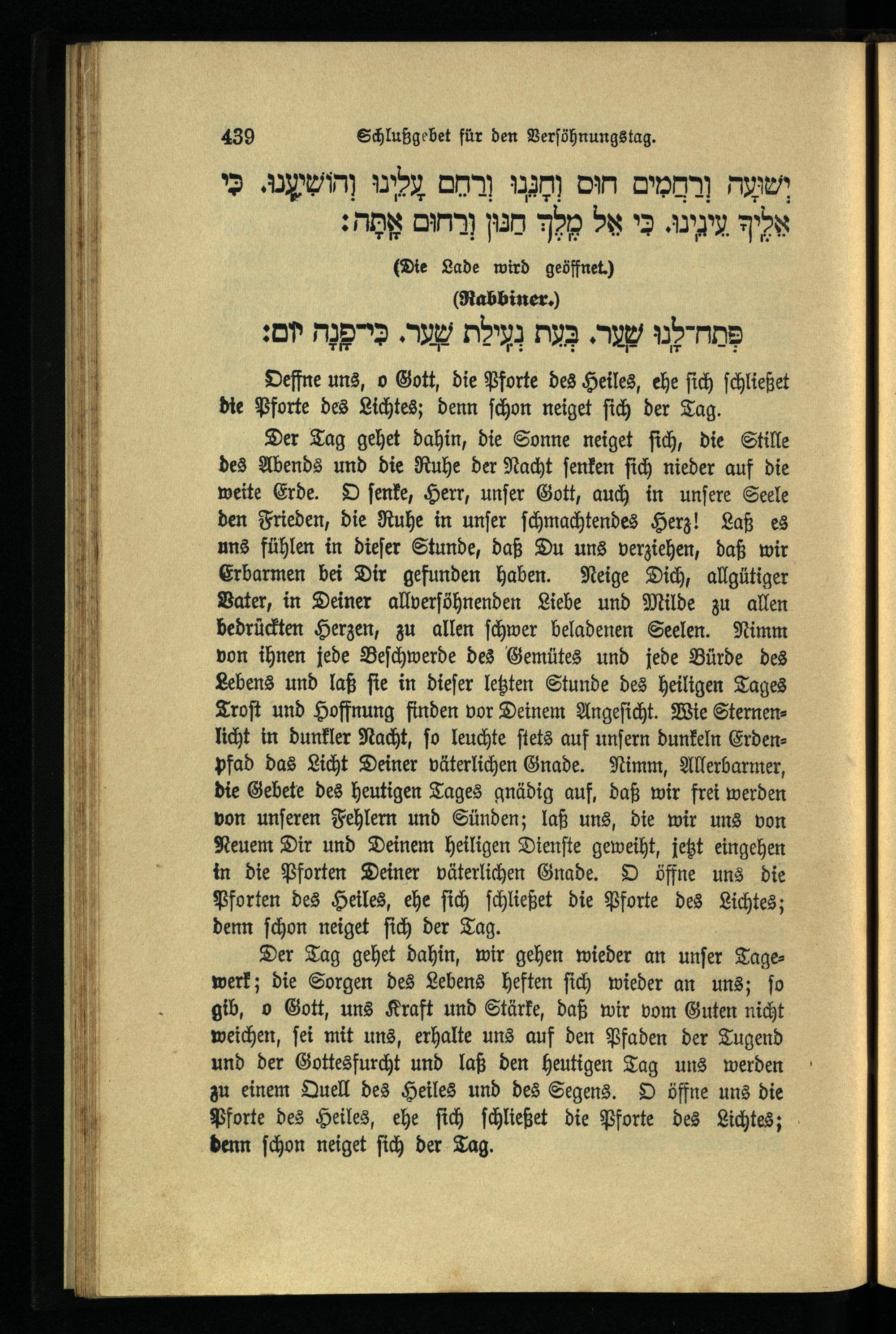 תפילה נעילה ליום כפור Schlußgebet für den Versöhnungstag.