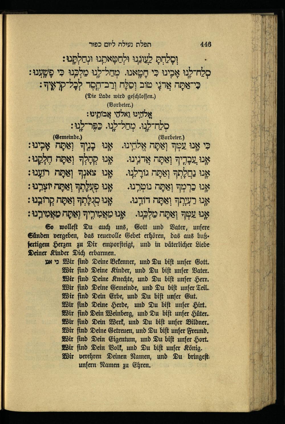 תפילה נעילה ליום כפור Schlußgebet für den Versöhnungstag.