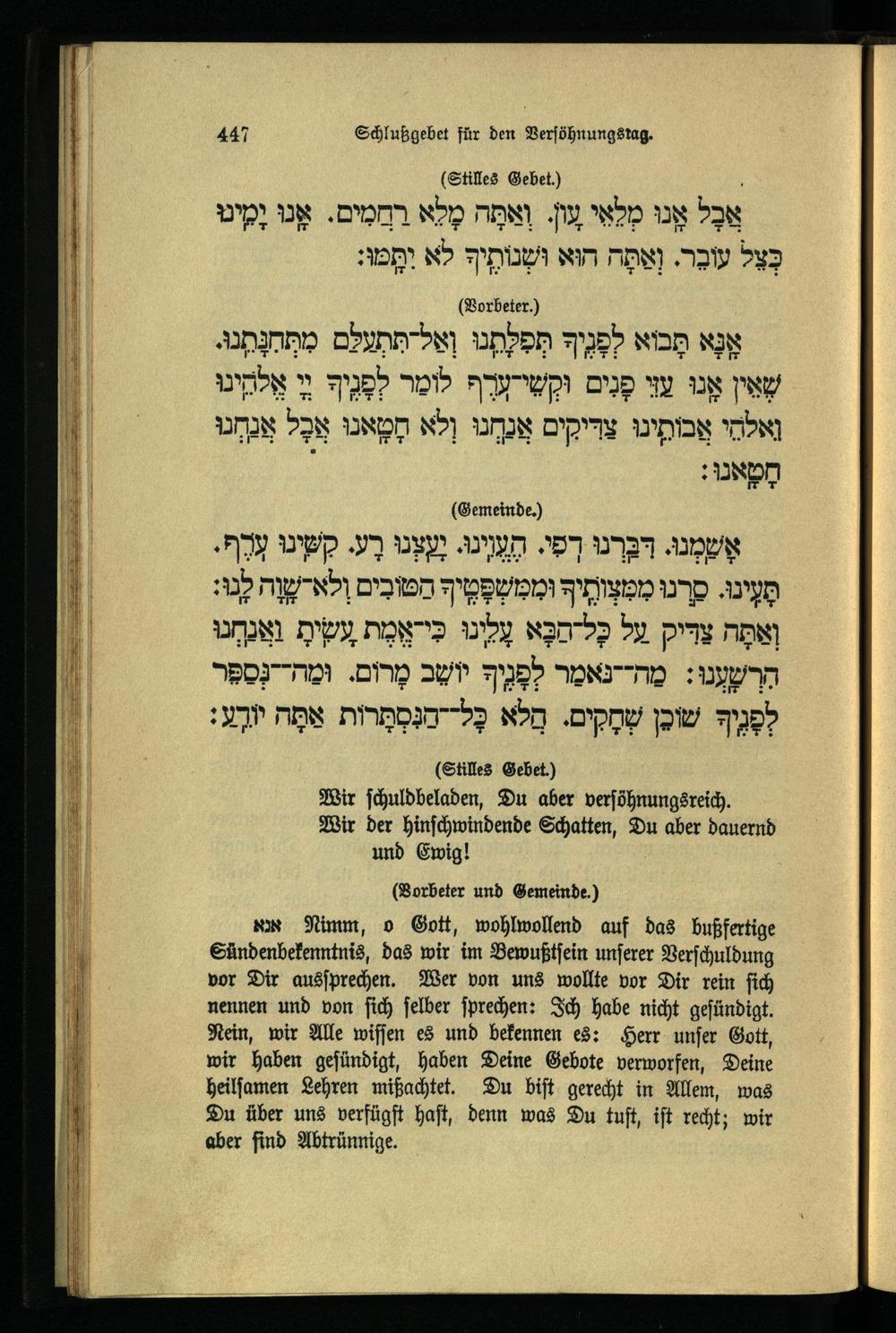 תפילה נעילה ליום כפור Schlußgebet für den Versöhnungstag.