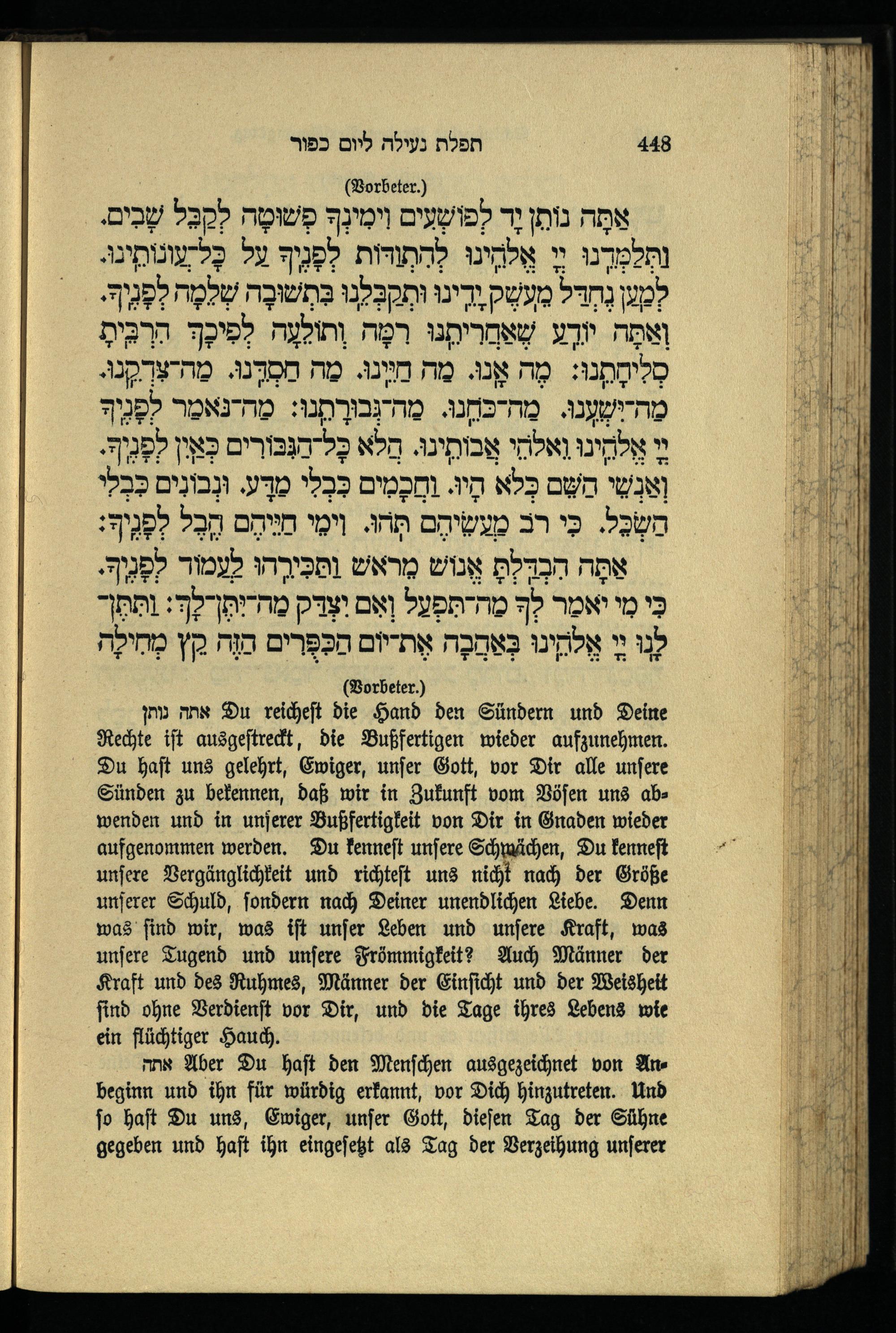 תפילה מנחה ליום כפור Minchahgebet für den Versöhnungstag.