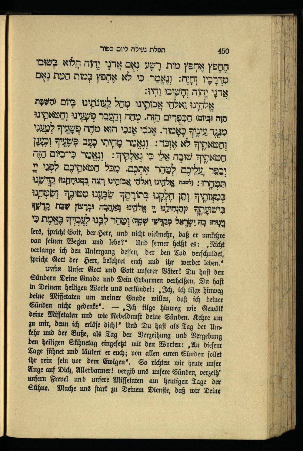 תפילה נעילה ליום כפור Schlußgebet für den Versöhnungstag.