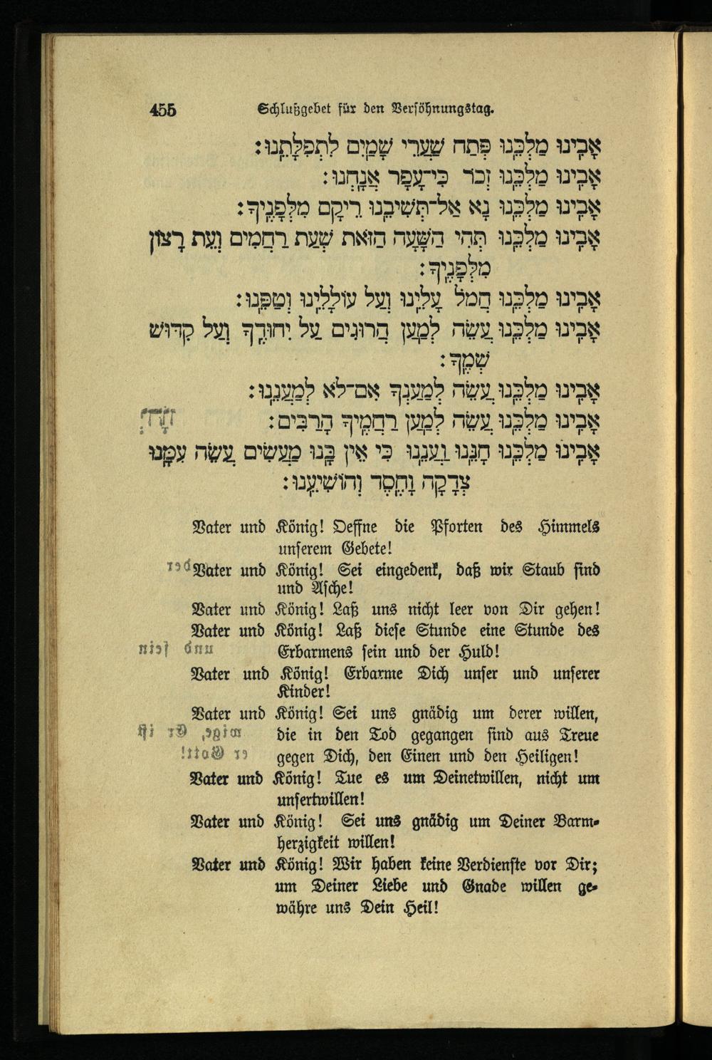 תפילה נעילה ליום כפור Schlußgebet für den Versöhnungstag.