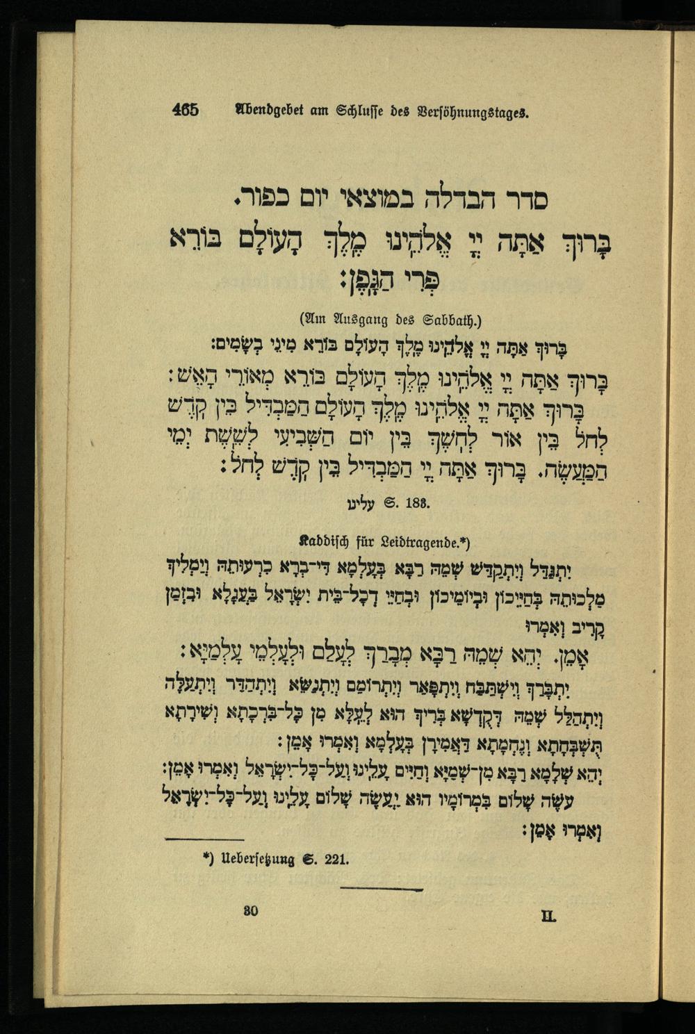 מעריב למוצאי יום כפור Abendgebet am Schlusse des Versöhnungstages.