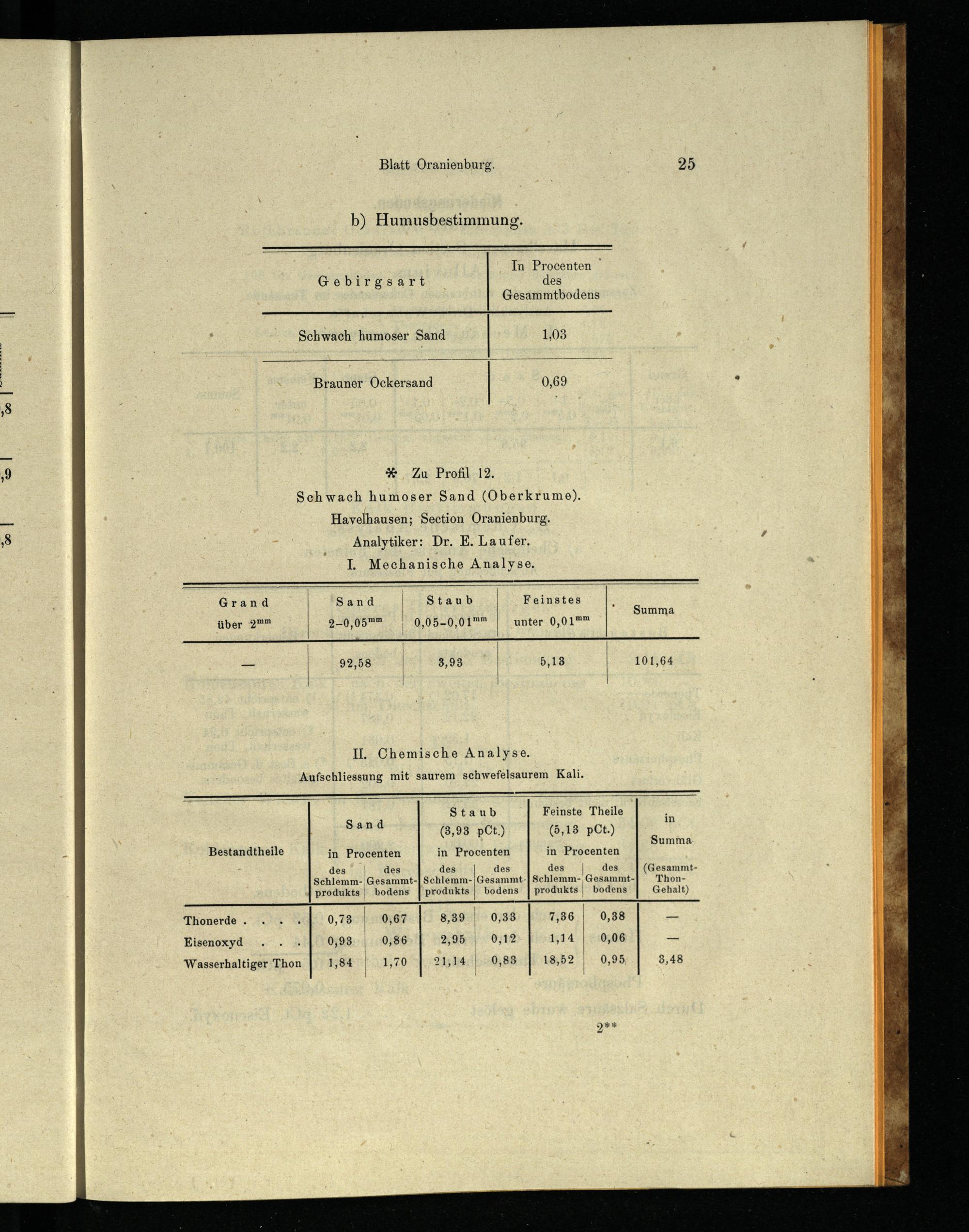 III. Analysen typischer Boden-Profile und Gebirgsarten