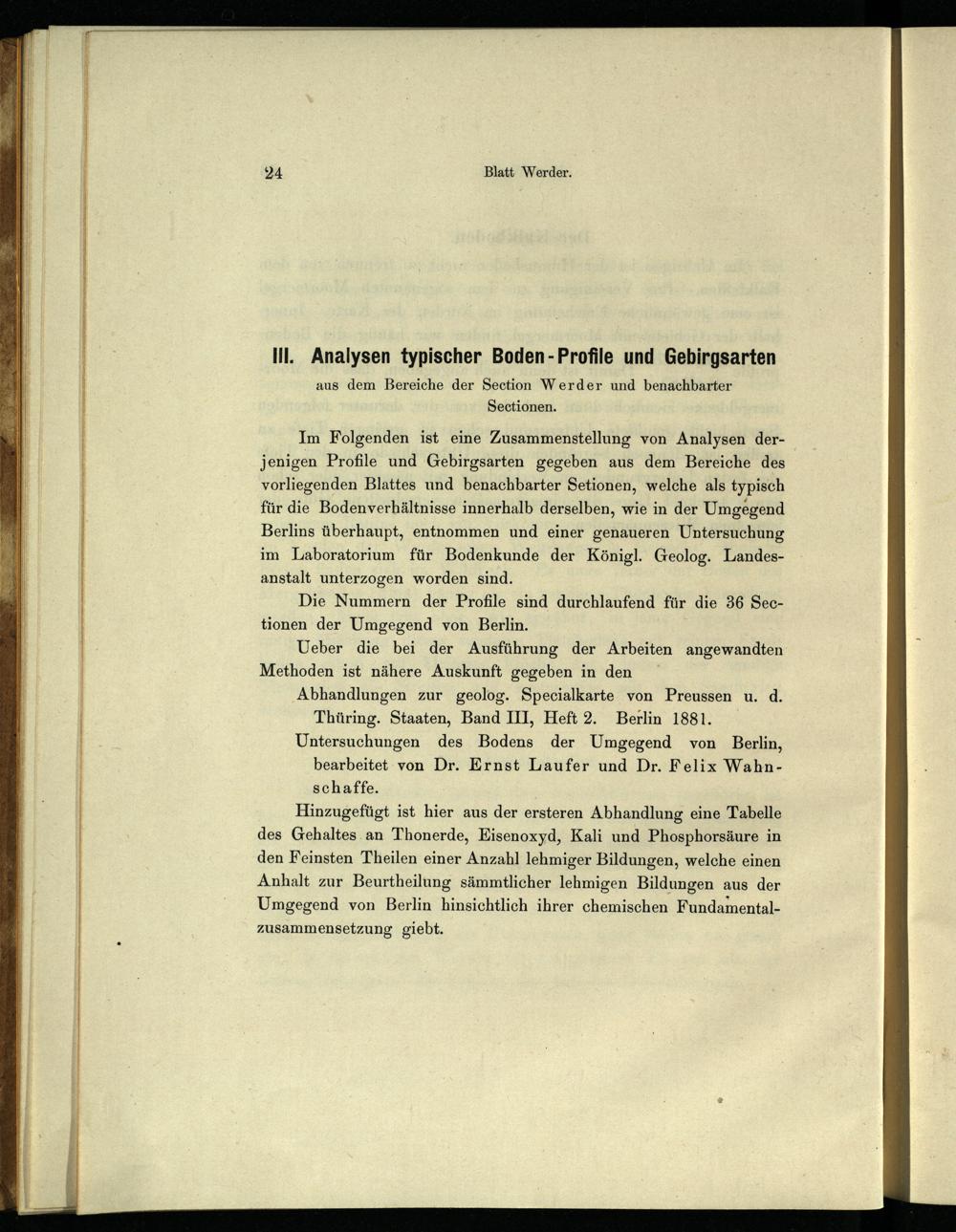 III. Analysen typischer Boden-Profile und Gebirgsarten