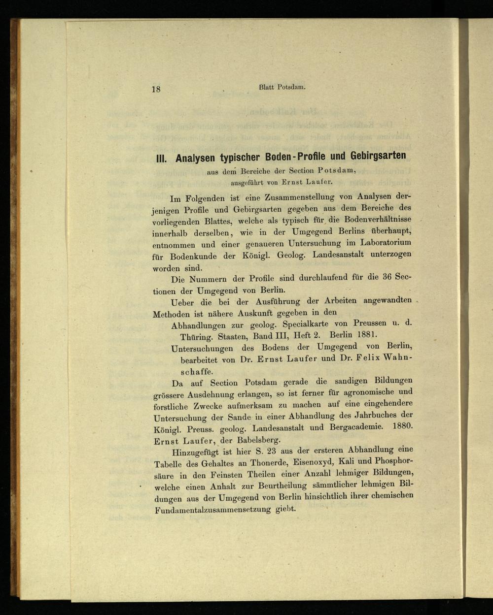III. Analysen typischer Boden-Profile und Gebirgsarten