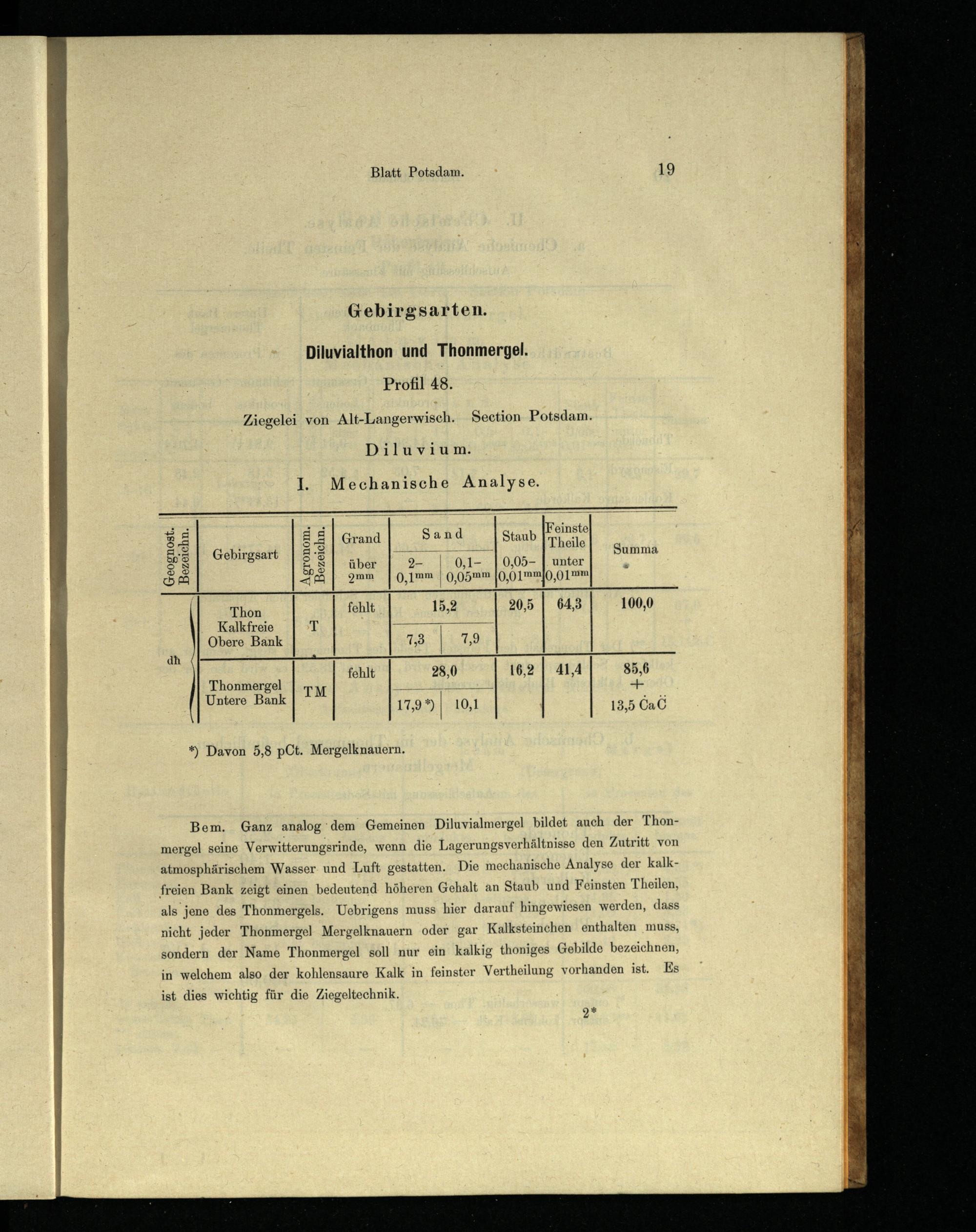 III. Analysen typischer Boden-Profile und Gebirgsarten
