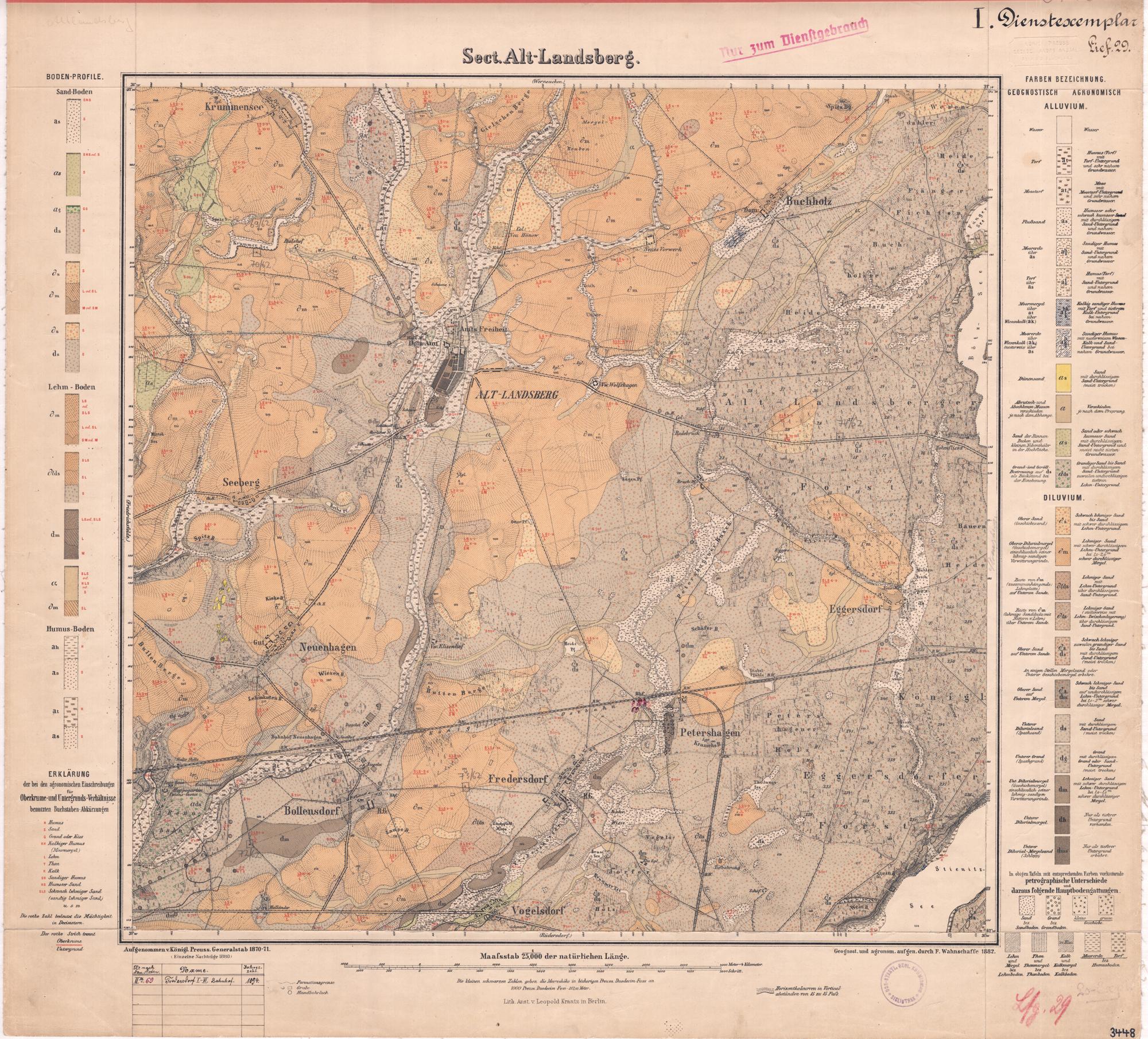 [Neue Nr. 3448] (1882) Sect. Alt-Landsberg : [geologische Karte] / Aufgen. v. Königl. Preuss. Generalstab. Geognost. u. agronom. aufgen. durch F. Wahnschaffe 1882
