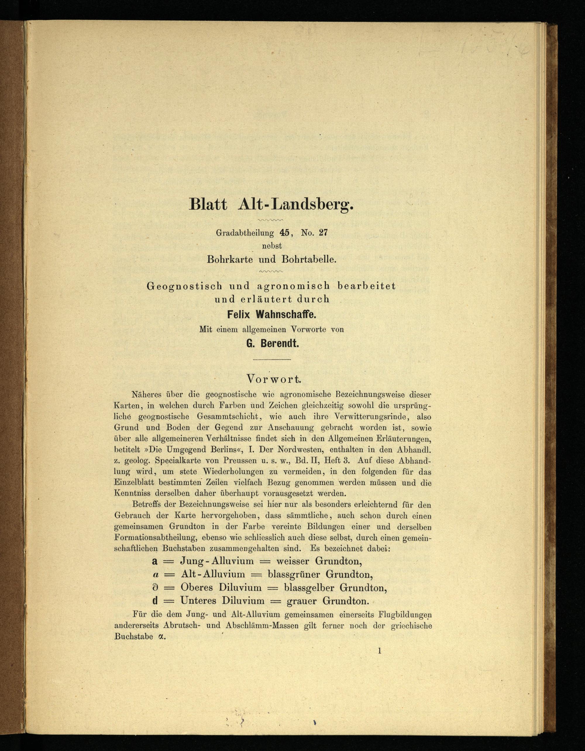 [Neue Nr. 3448] (1882) Sect. Alt-Landsberg : [geologische Karte] / Aufgen. v. Königl. Preuss. Generalstab. Geognost. u. agronom. aufgen. durch F. Wahnschaffe 1882