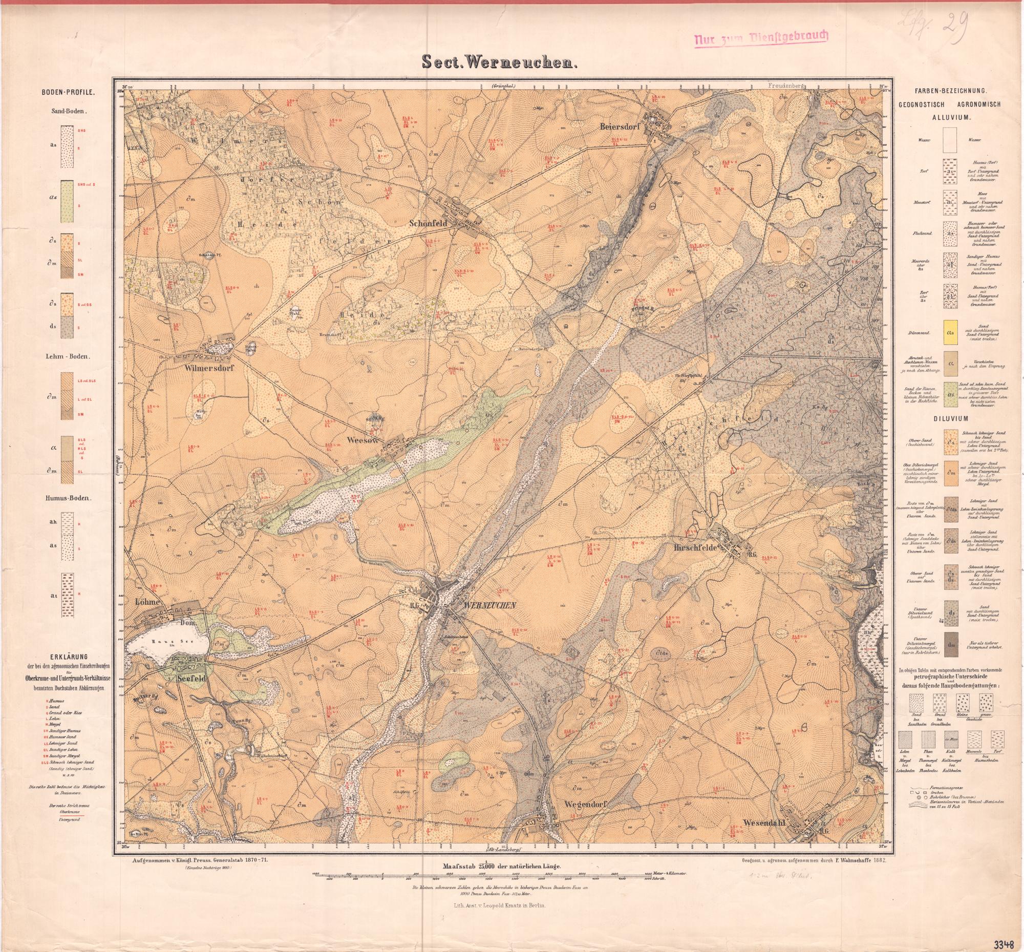 [1767] = [Neue Nr. 3348] (1882) Sect. Werneuchen : [geologische Karte] / geognost. u. agronom. aufgen. durch F. Wahnschaffe