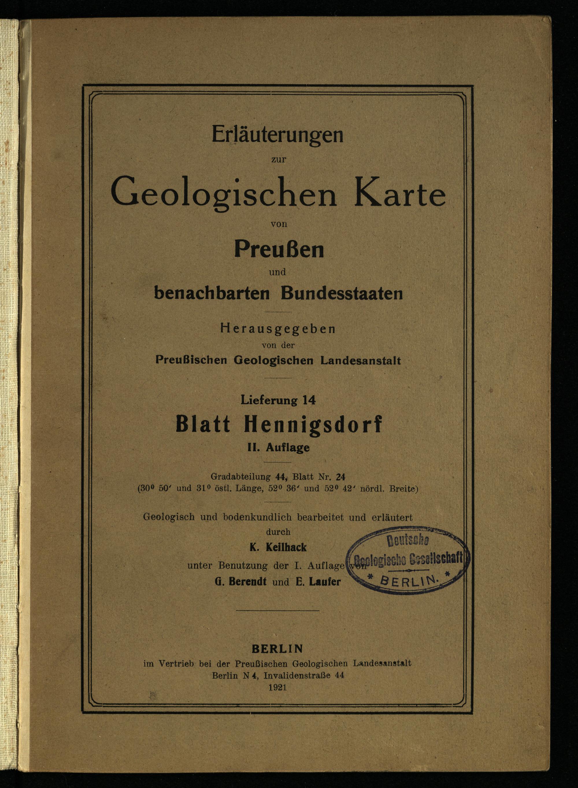 [Neue Nr. 3345] (1938) Hennigsdorf / geogn. bearb. durch G. Berendt ..