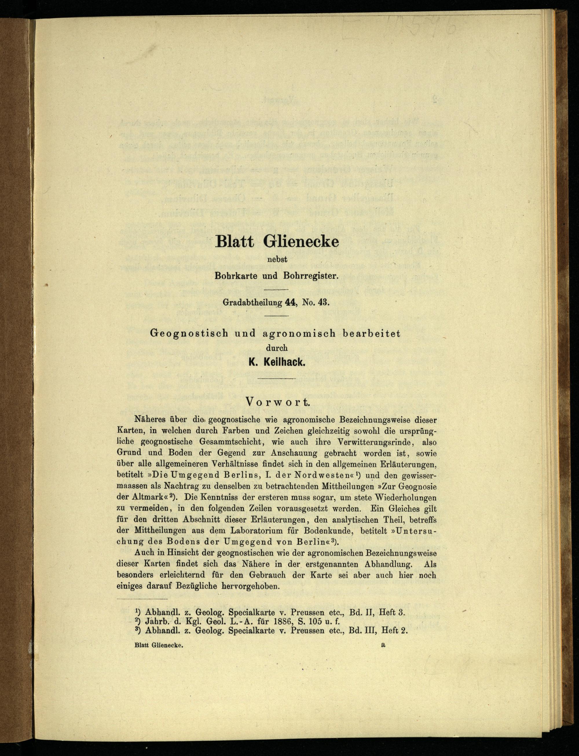 Grad-Abtheilung 44, Blatt 43 [Neue Nr. 3740] (1891) Glienecke : [geologische Karte] / geognost. und agronom. bearb. durch K. Keilhack
