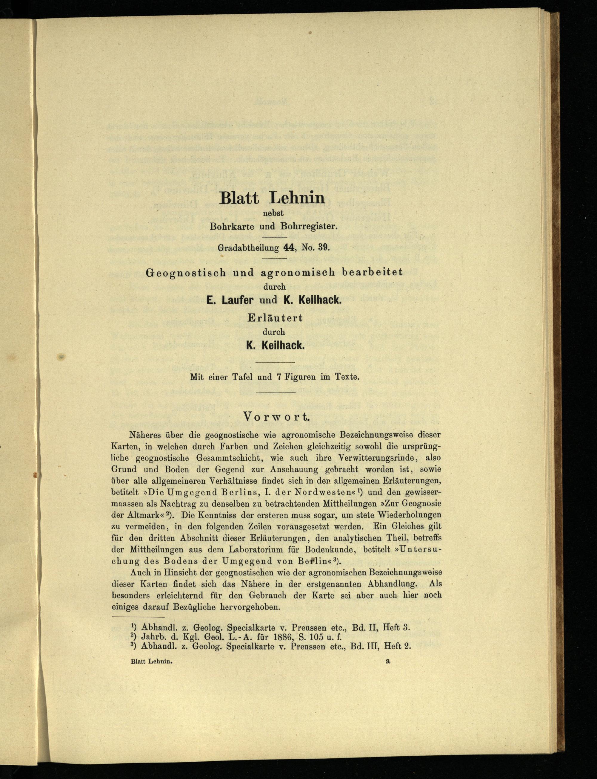 Grad-Abtheilung 44, Blatt 39 [Neue Nr. 3642] (1891) Lehnin : [geologische Karte] / geognost. und agronom. bearb. durch E. Laufer und K. Keilhack