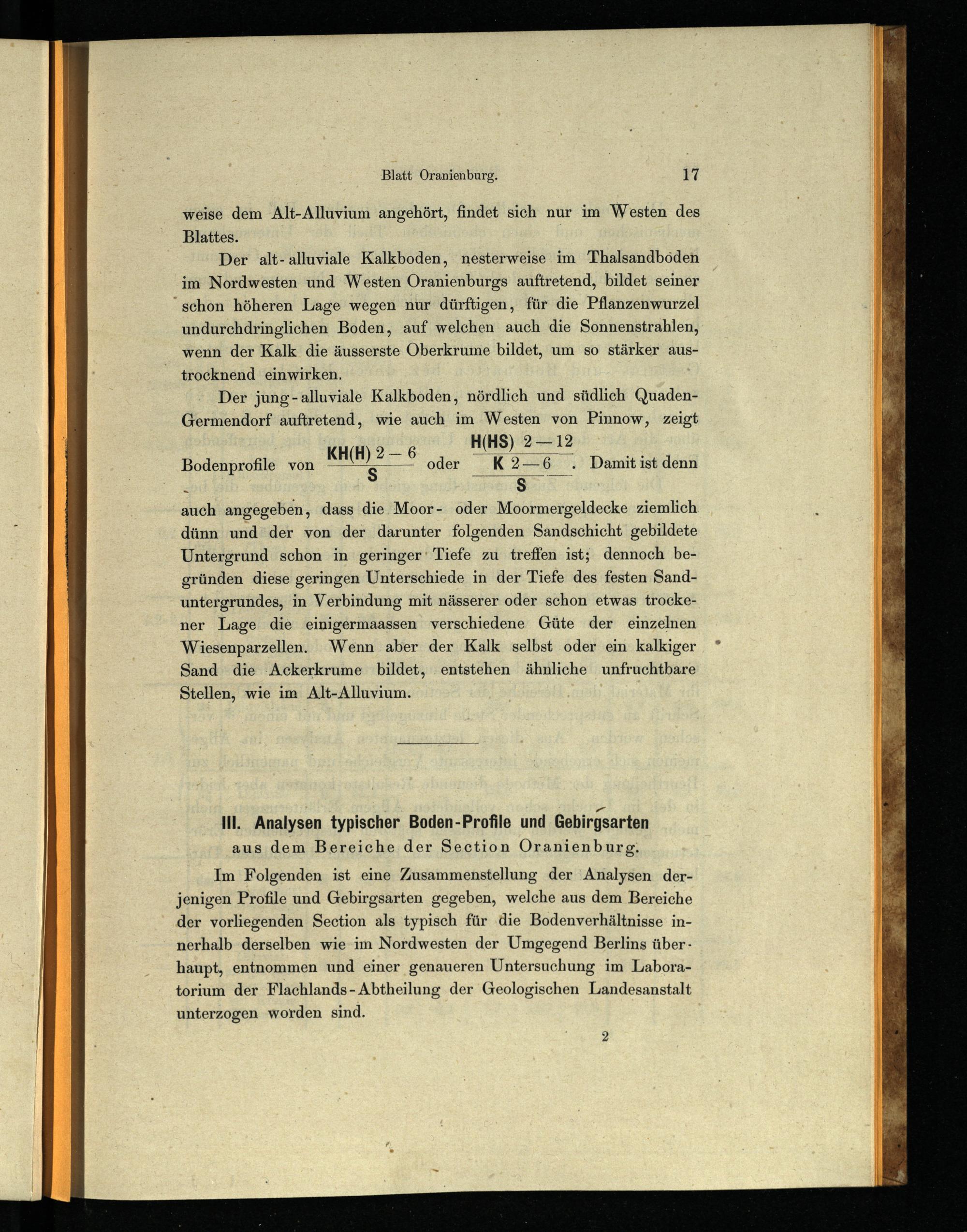III. Analysen typischer Boden-Profile und Gebirgsarten