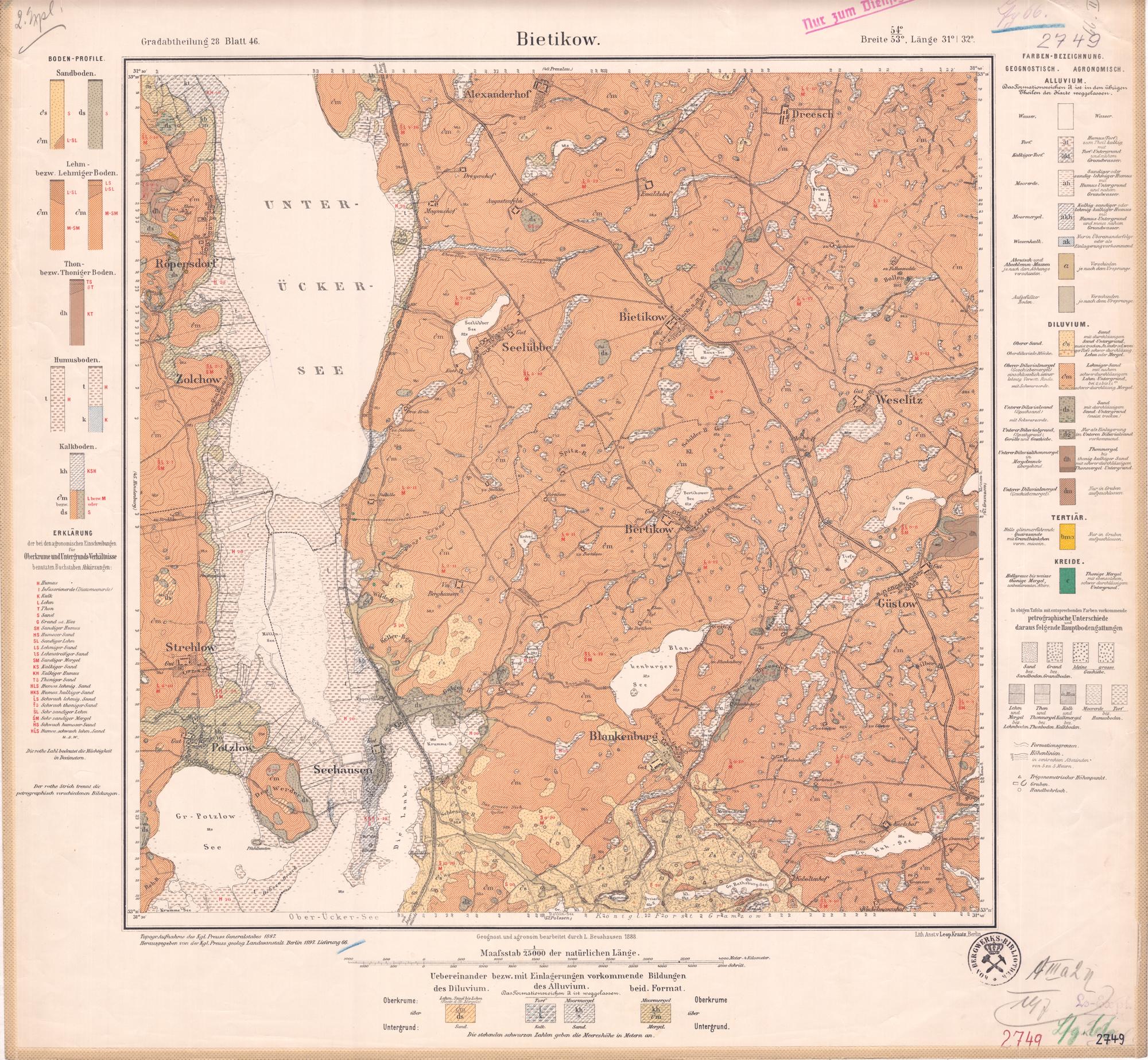 Grad-Abtheilung 28, Blatt 46 [Neue Nr. 2749] (1897) Bietikow / geognostisch und agronomisch bearbeitet durch L. Beushausen 1888