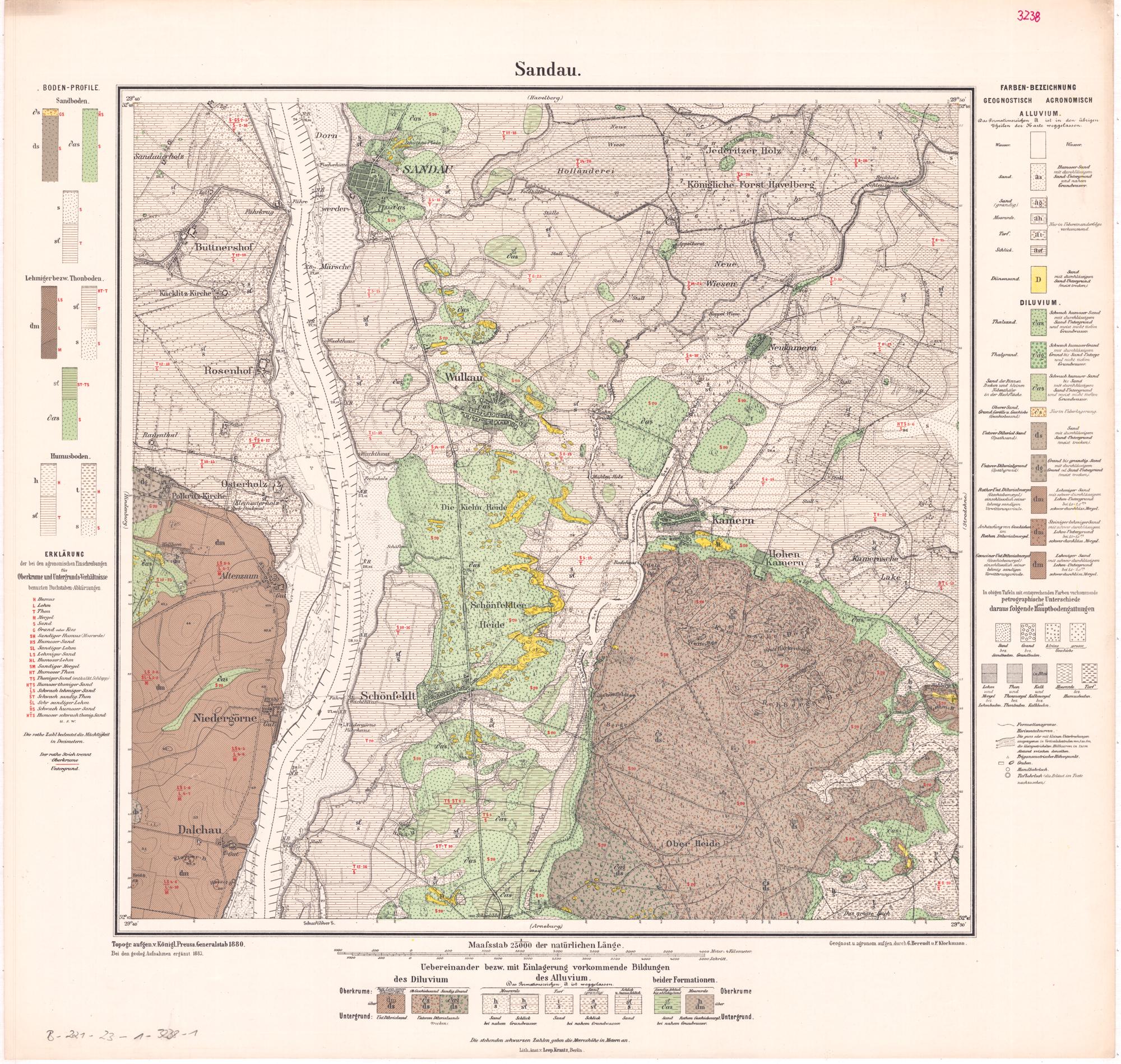 Grad-Abtheilung 43, Blatt 17 [Neue Nr. 3238] (1883) Sandau : [geologische Karte] / geognostisch und agronomisch aufgenommen durch G. Berendt und F. Klockmann