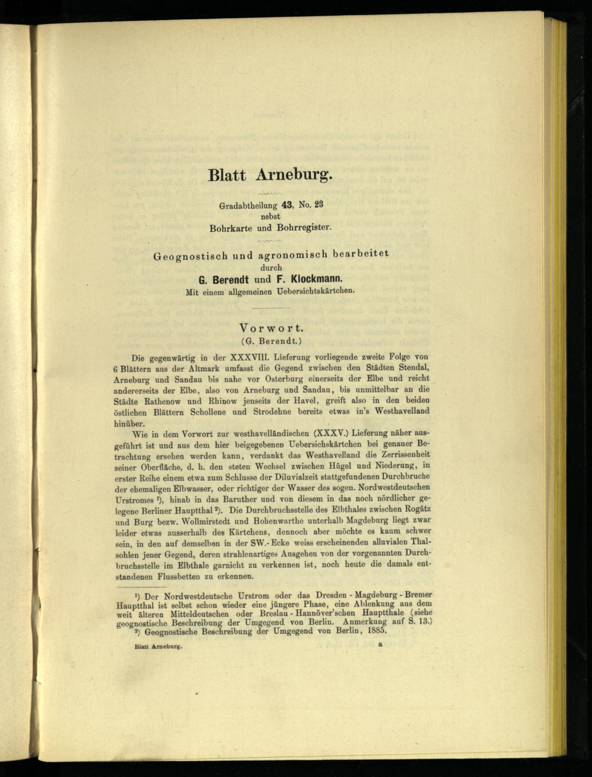 Grad-Abtheilung 43, Blatt 23 [Neue Nr. 3338] (1882) Arneburg : [geologische Karte] / geognostisch und agronomisch aufgenommen durch G. Berendt und F. Klockmann