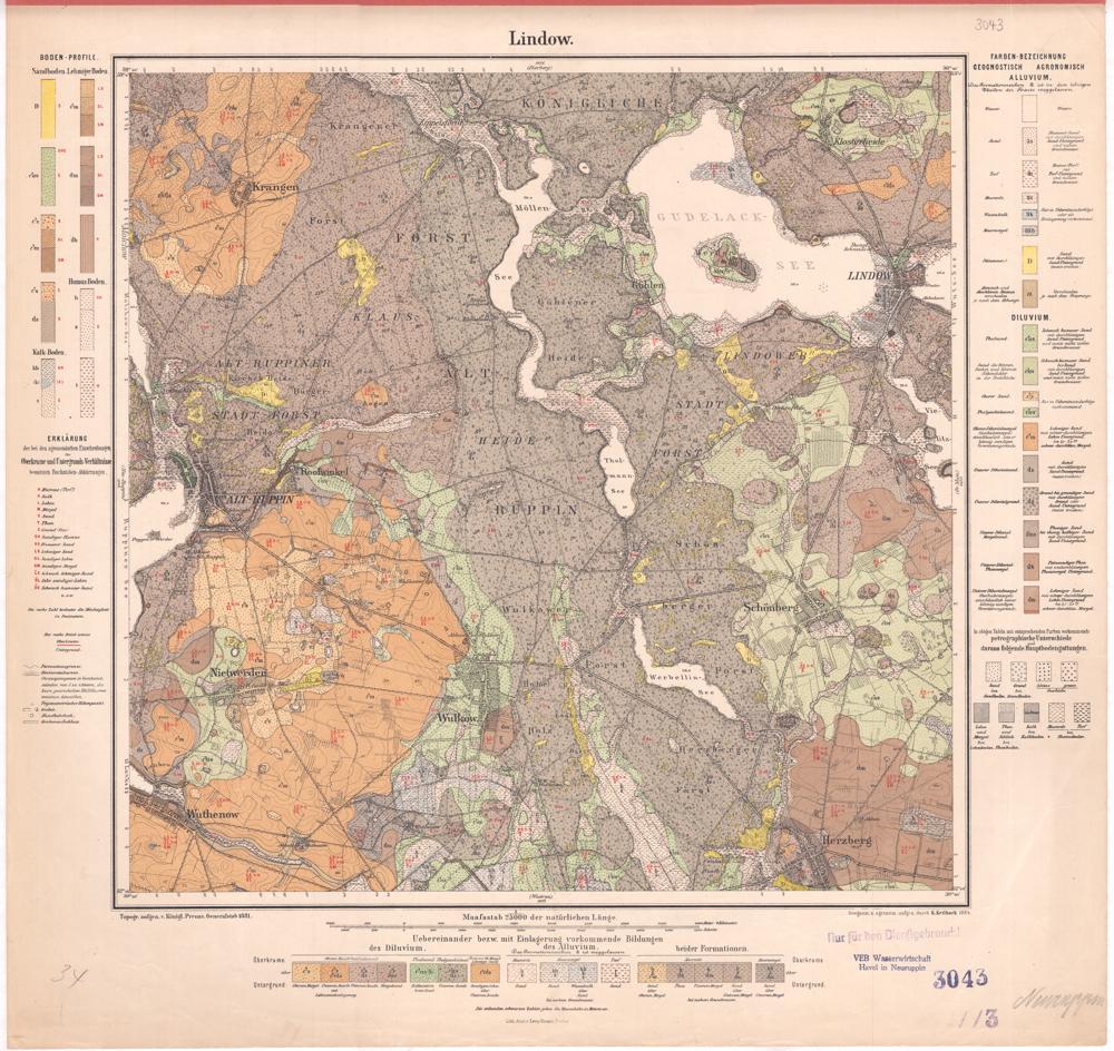[Neue Nr. 3043] (1884) Lindow : geologische Karte / topogr. aufgen. v. Königl. Preuss. Generalstab 1881. Geognost. und agronom. aufgen. durch K. Keilhack 1884