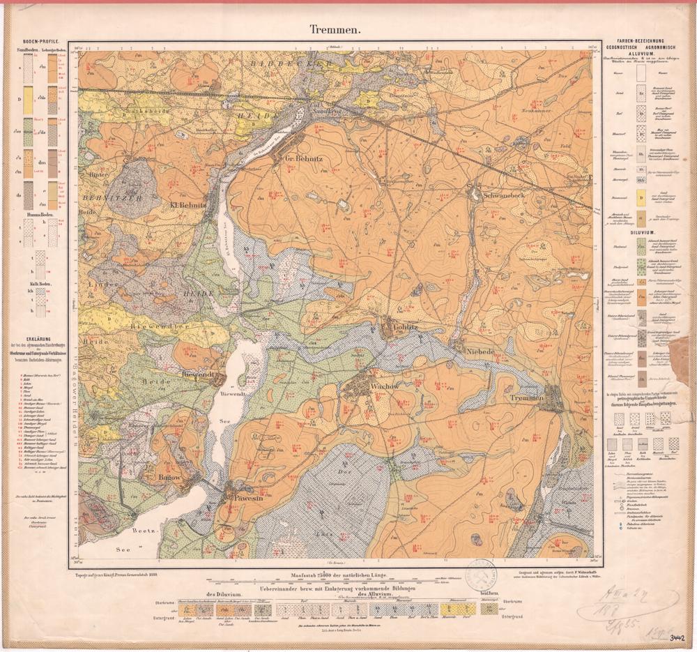 [Neue Nr. 3442] (1880) Tremmen : [geologische Karte] / geognost. und agronom. aufgenommen durch F. Wahnschaffe ; unter theilweiser Hülfeleistung der Culturtechniker Lübeck und Wölfer