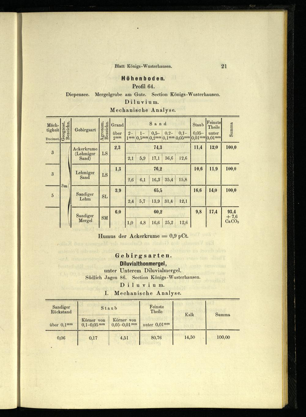 III. Analysen typischer Boden-Profile und Gebirgsarten.