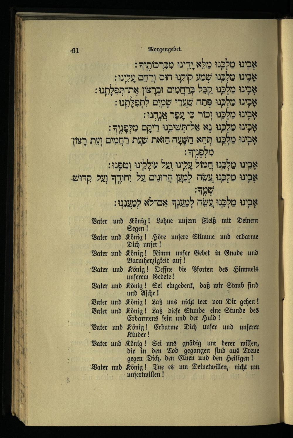 אבינו מלכנו חטאנו לפניך (Für die zehn Bußtage im Morgen- und Minchahgebet.)
