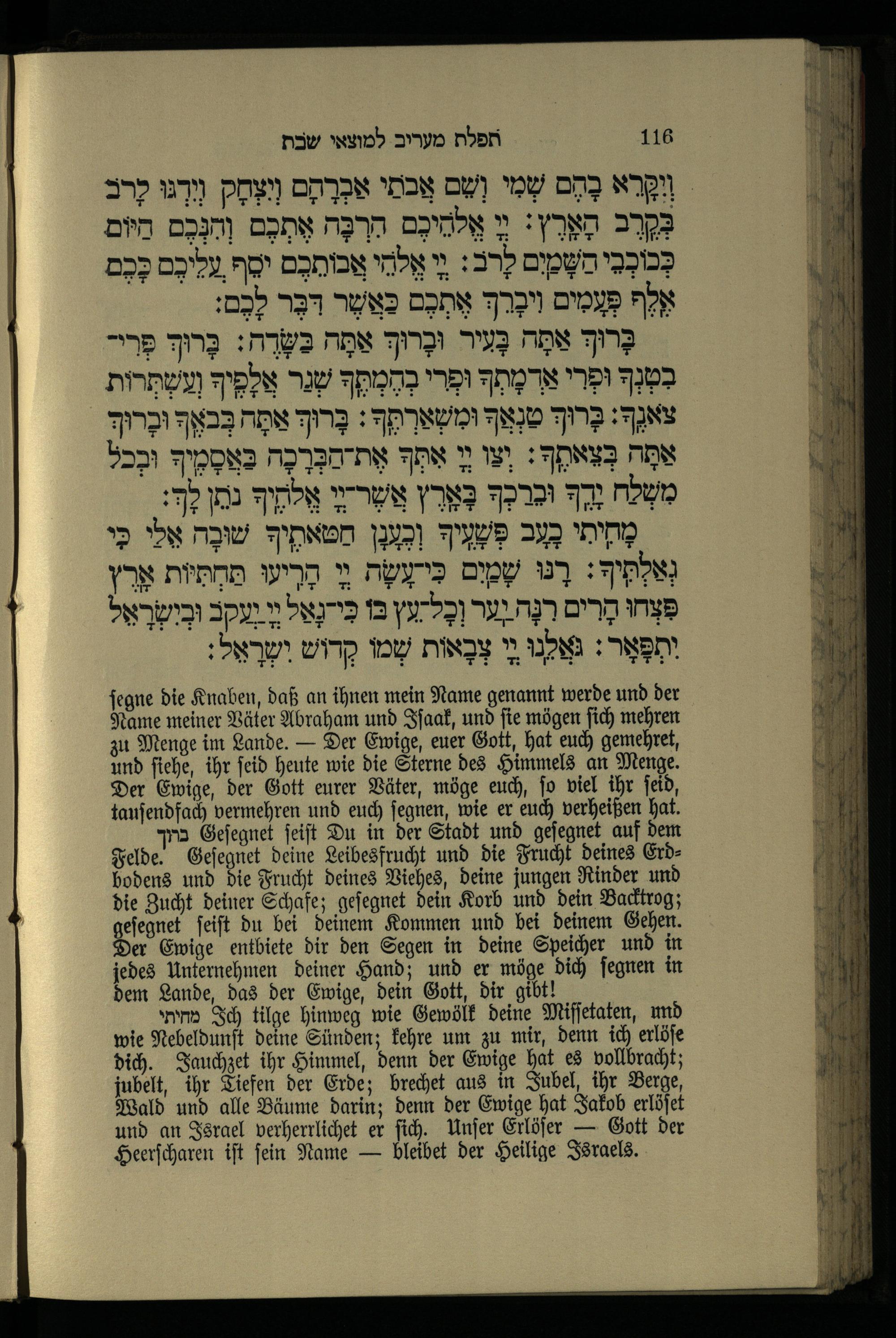 תפילת מעריב למוצאי שבת Abendgebet für den Ausgang des Sabbath.