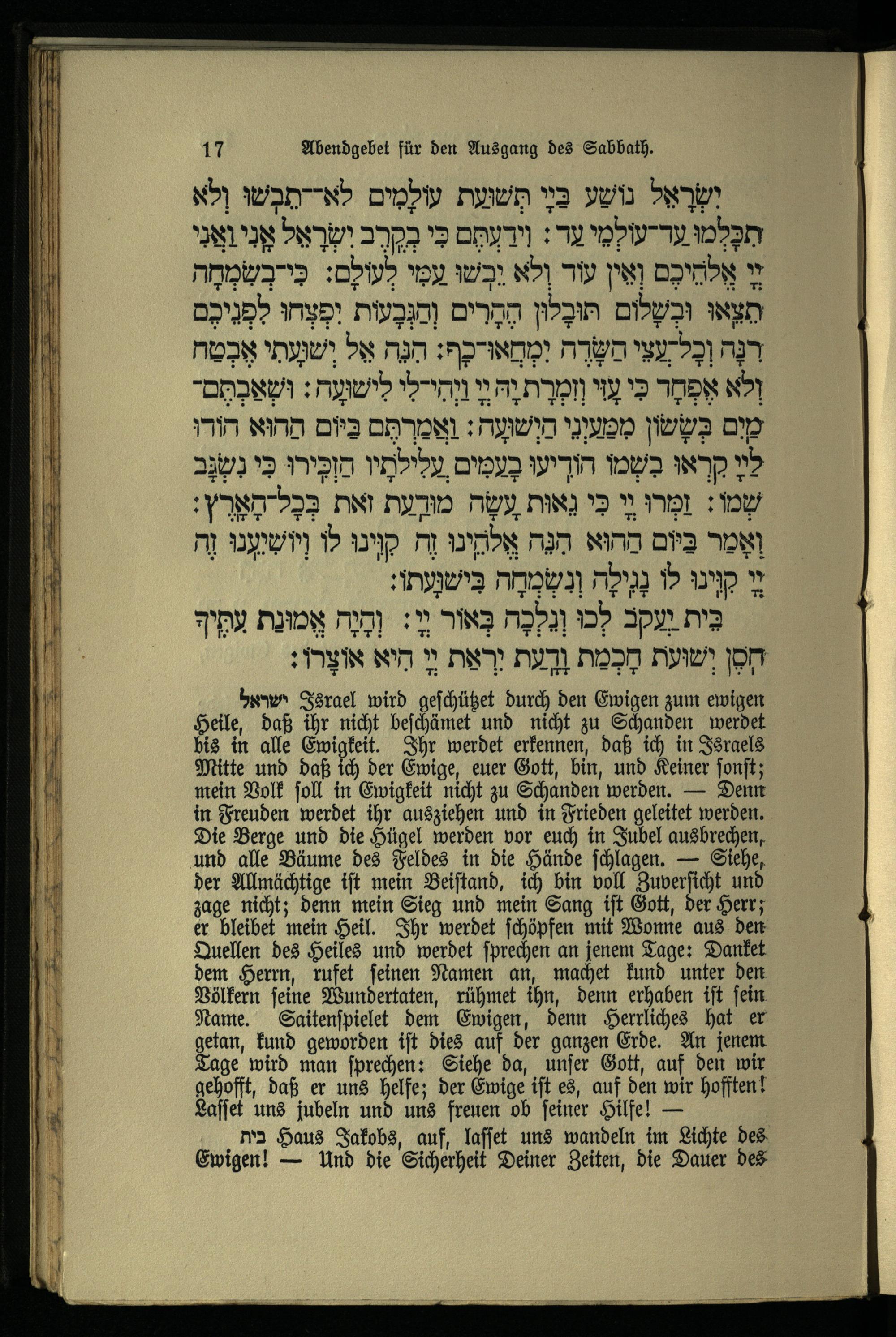 תפילת מעריב למוצאי שבת Abendgebet für den Ausgang des Sabbath.