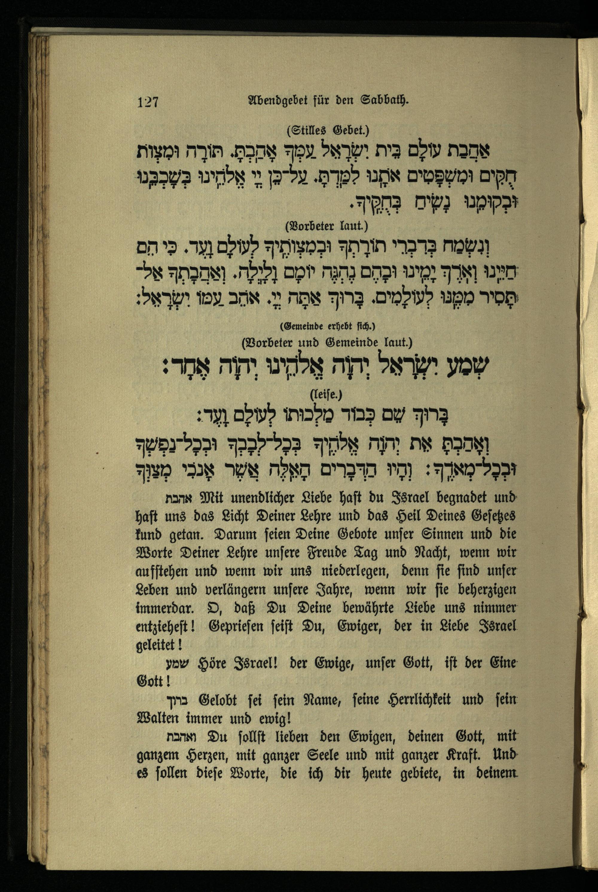 תפילה מעריב לשבת Abendgebet für den Sabbath.