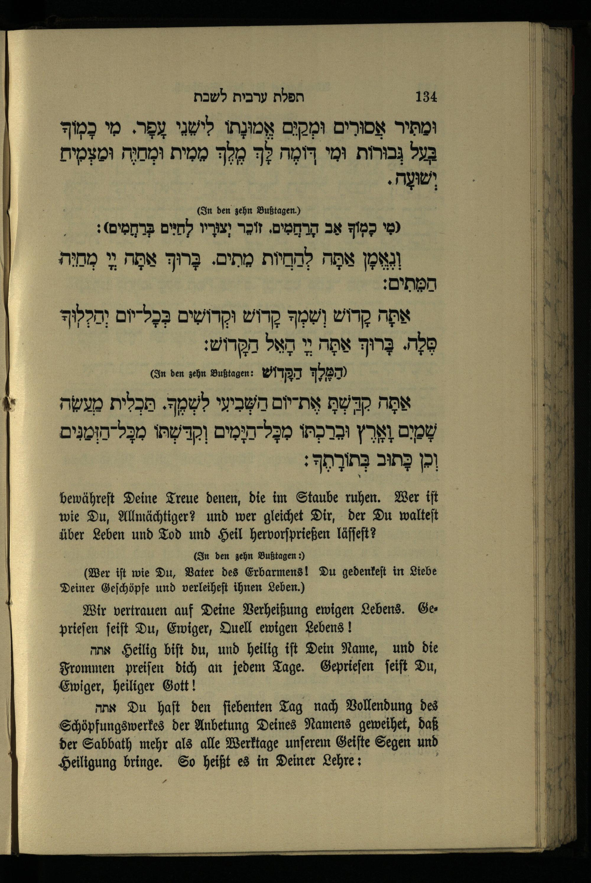תפילה מעריב לשבת Abendgebet für den Sabbath.