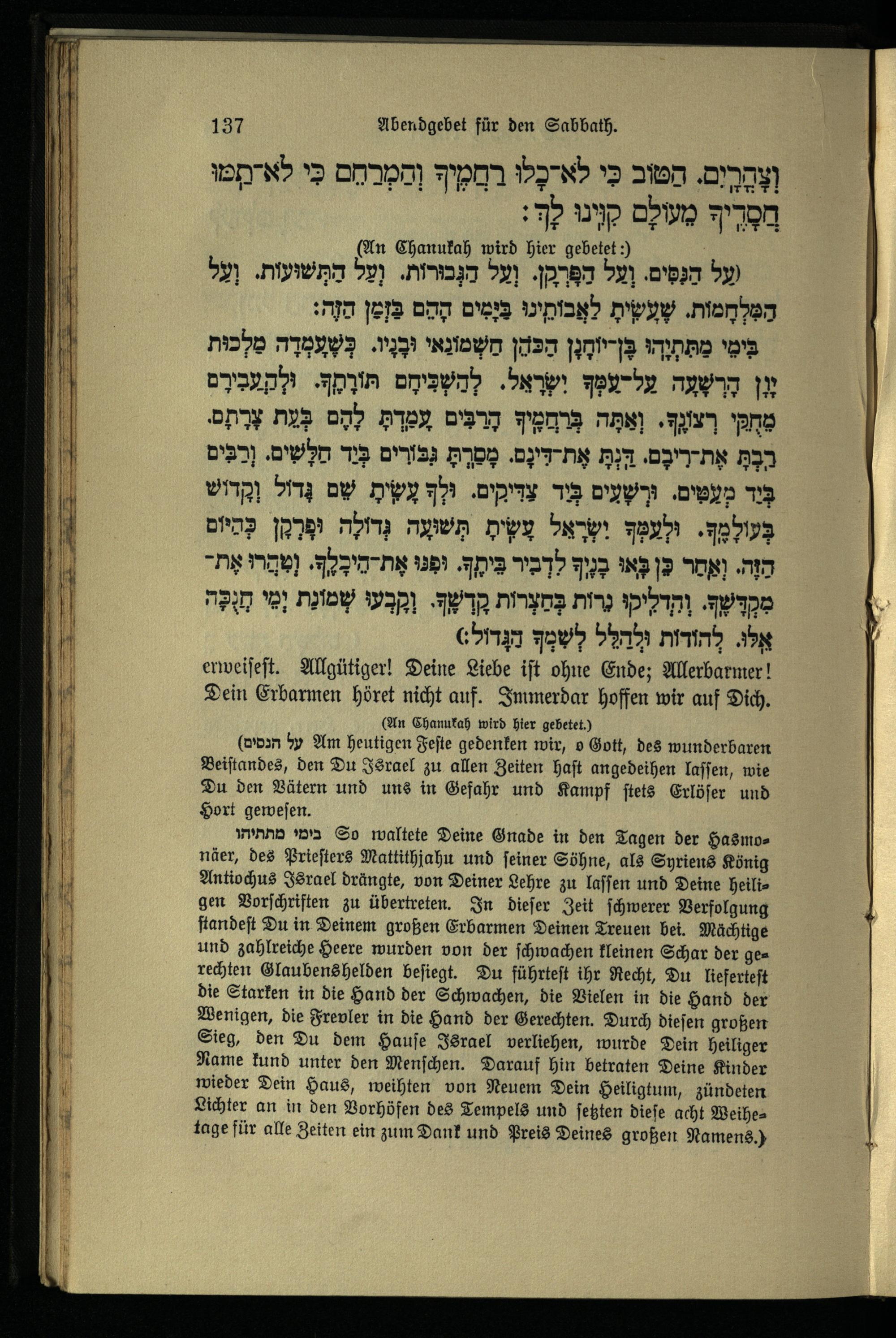 תפילה מעריב לשבת Abendgebet für den Sabbath.