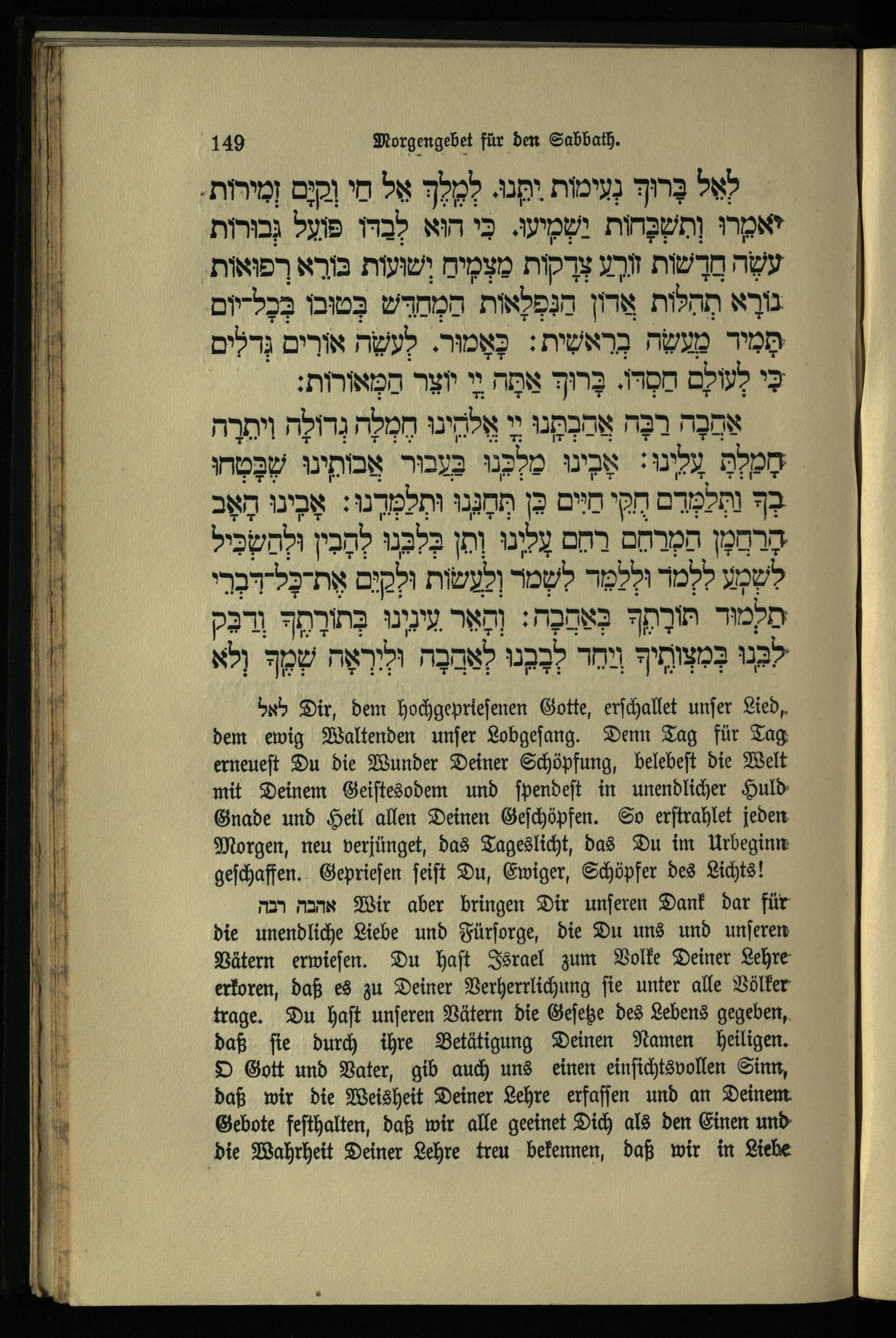 תפילה שחרית לשבת Morgengebet für den Sabbath.