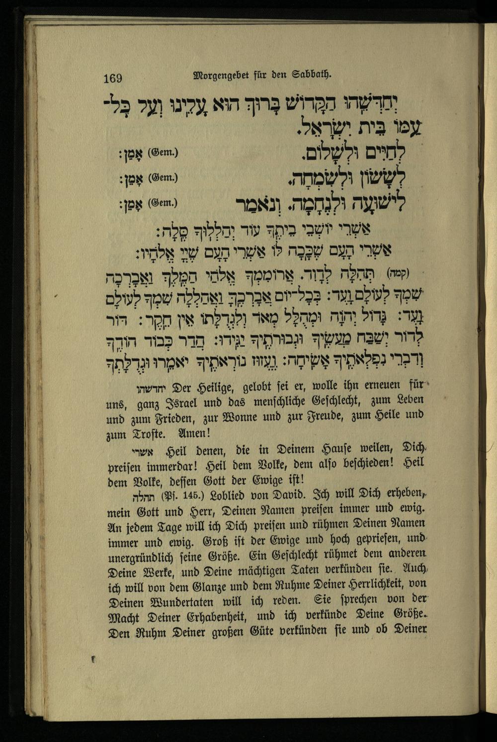 תפילה שחרית לשבת Morgengebet für den Sabbath.