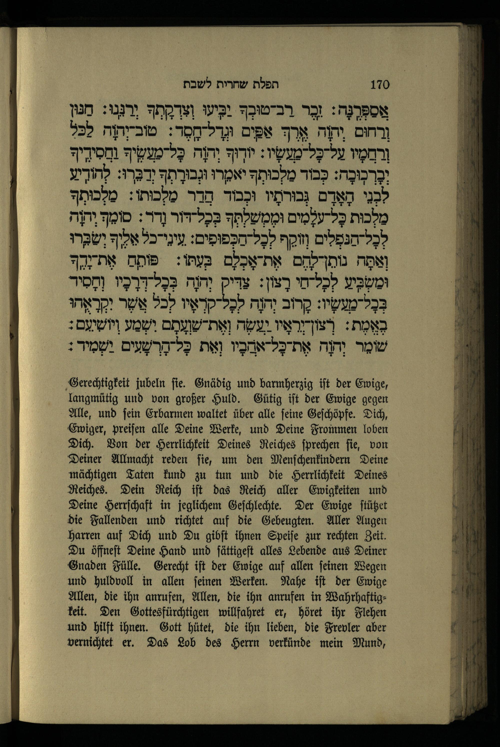 תפילה שחרית לשבת Morgengebet für den Sabbath.