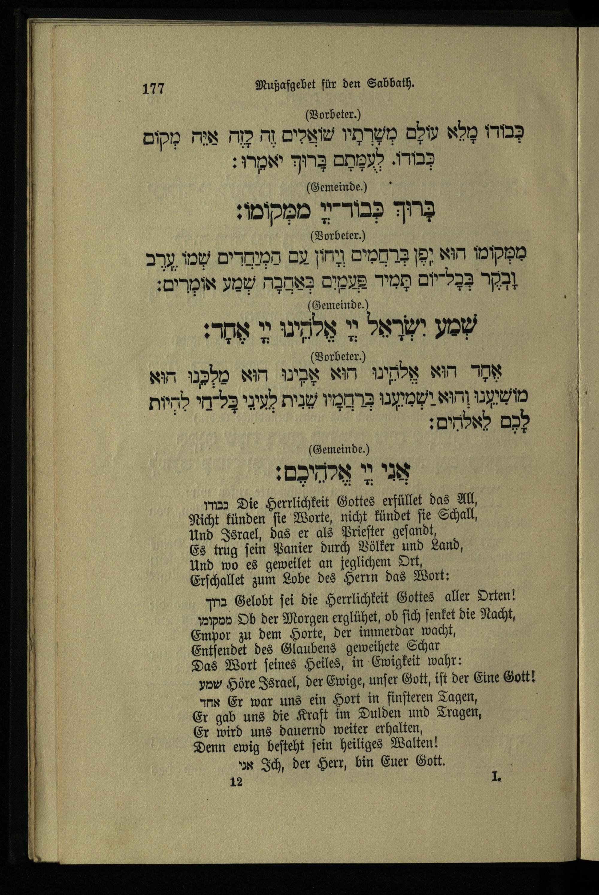תפלת מוסף לשבת Mußafgebet für den Sabbath.