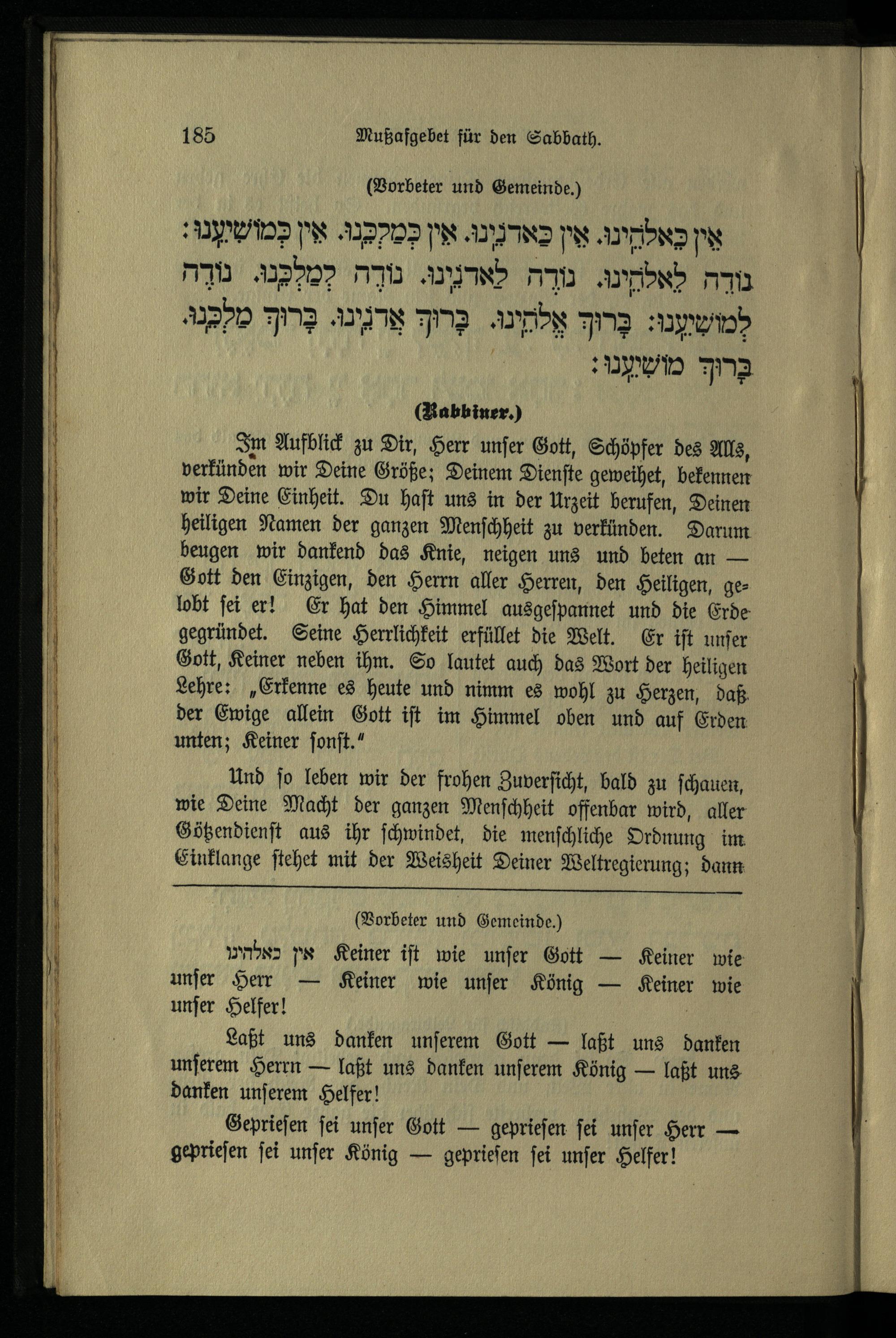 תפלת מוסף לשבת Mußafgebet für den Sabbath.