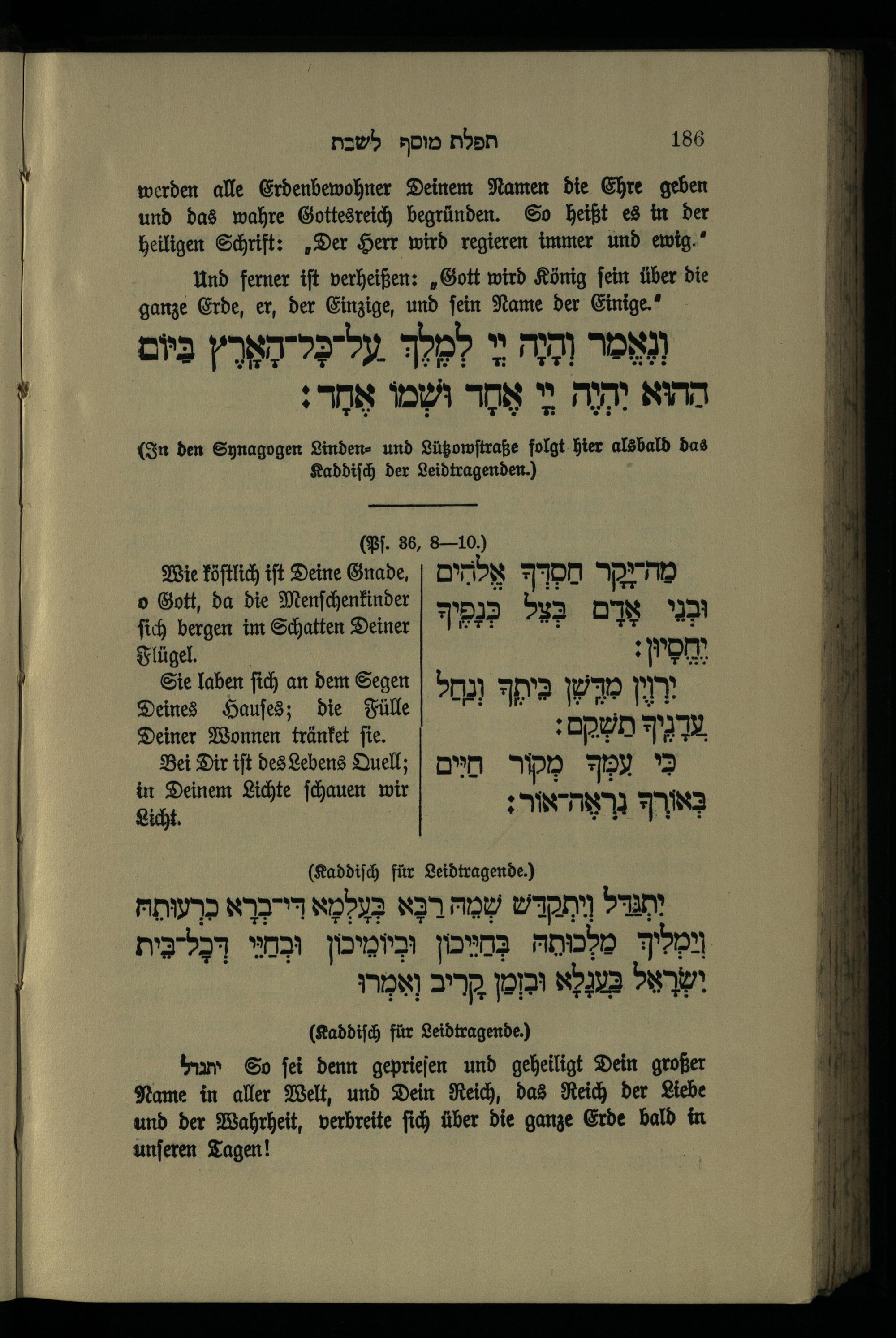 תפלת מוסף לשבת Mußafgebet für den Sabbath.