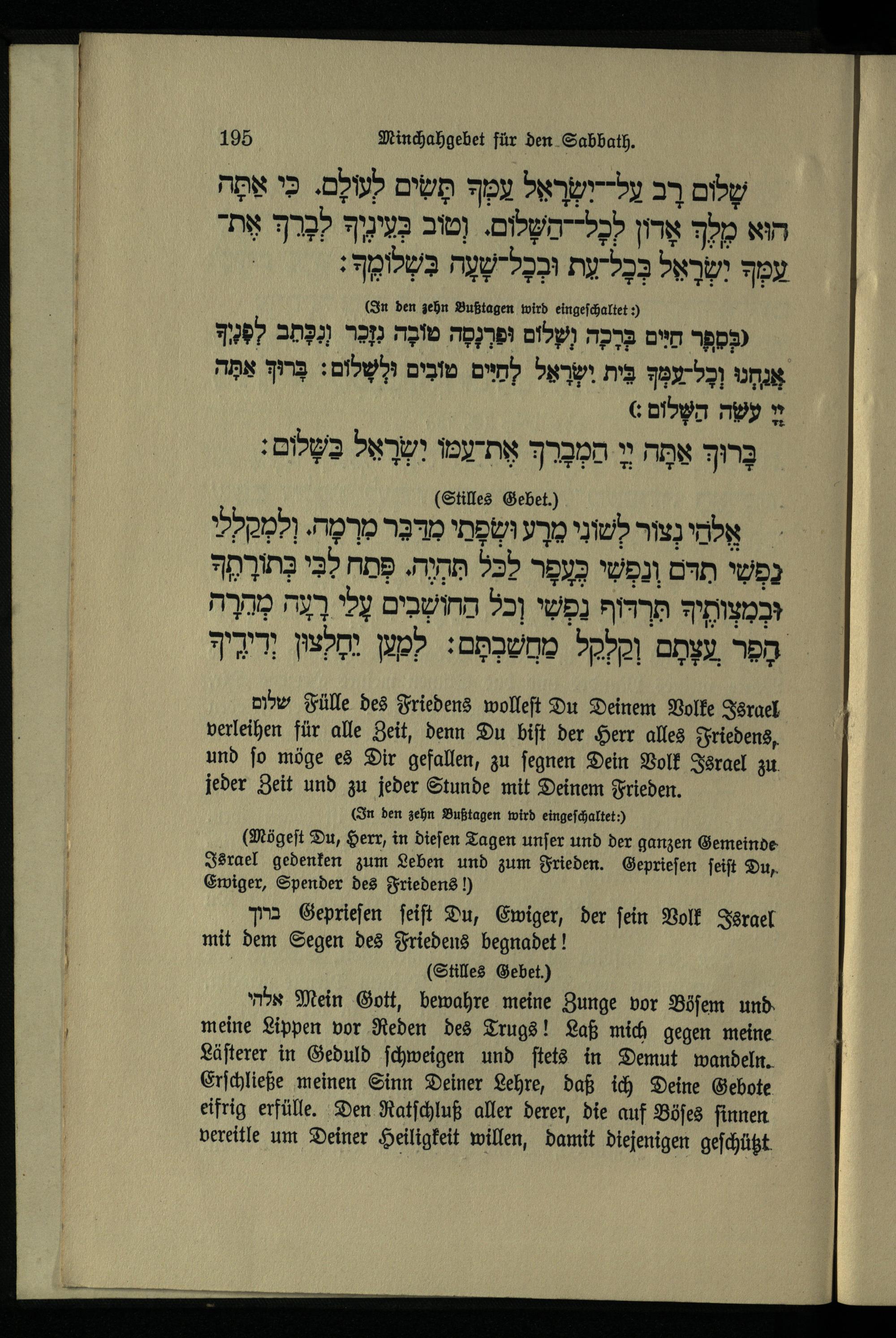 תפילה מנחה ליום השבת Minchahgebet für den Sabbath.
