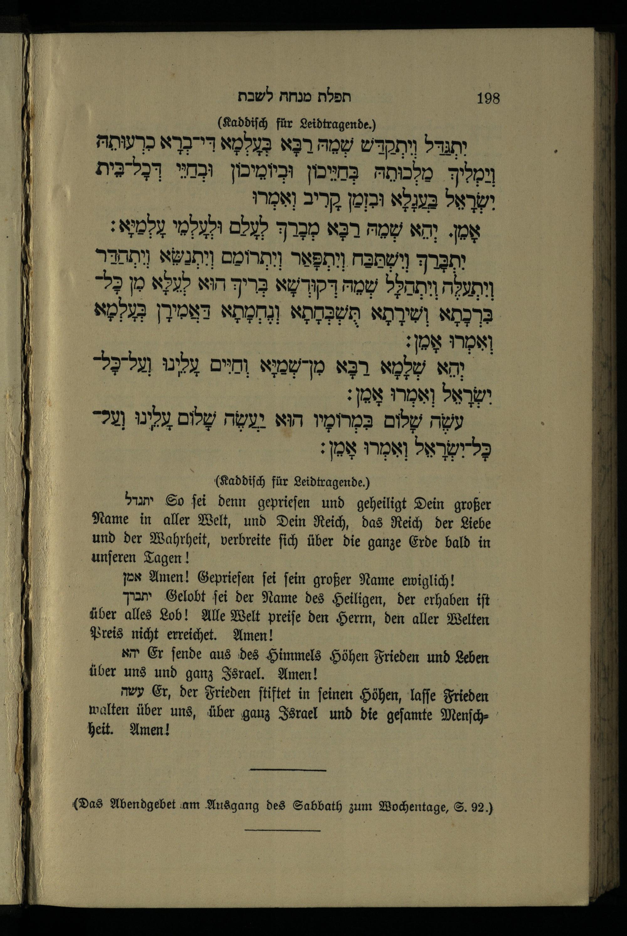תפילה מנחה ליום השבת Minchahgebet für den Sabbath.