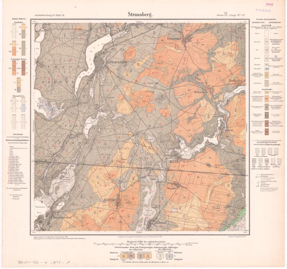Grad-Abtheilung 45, Blatt 28 [Neue Nr. 3449] (1895) Strausberg : [geologische Karte] / geognostisch und agronomisch bearb. durch F. Wahnschaffe