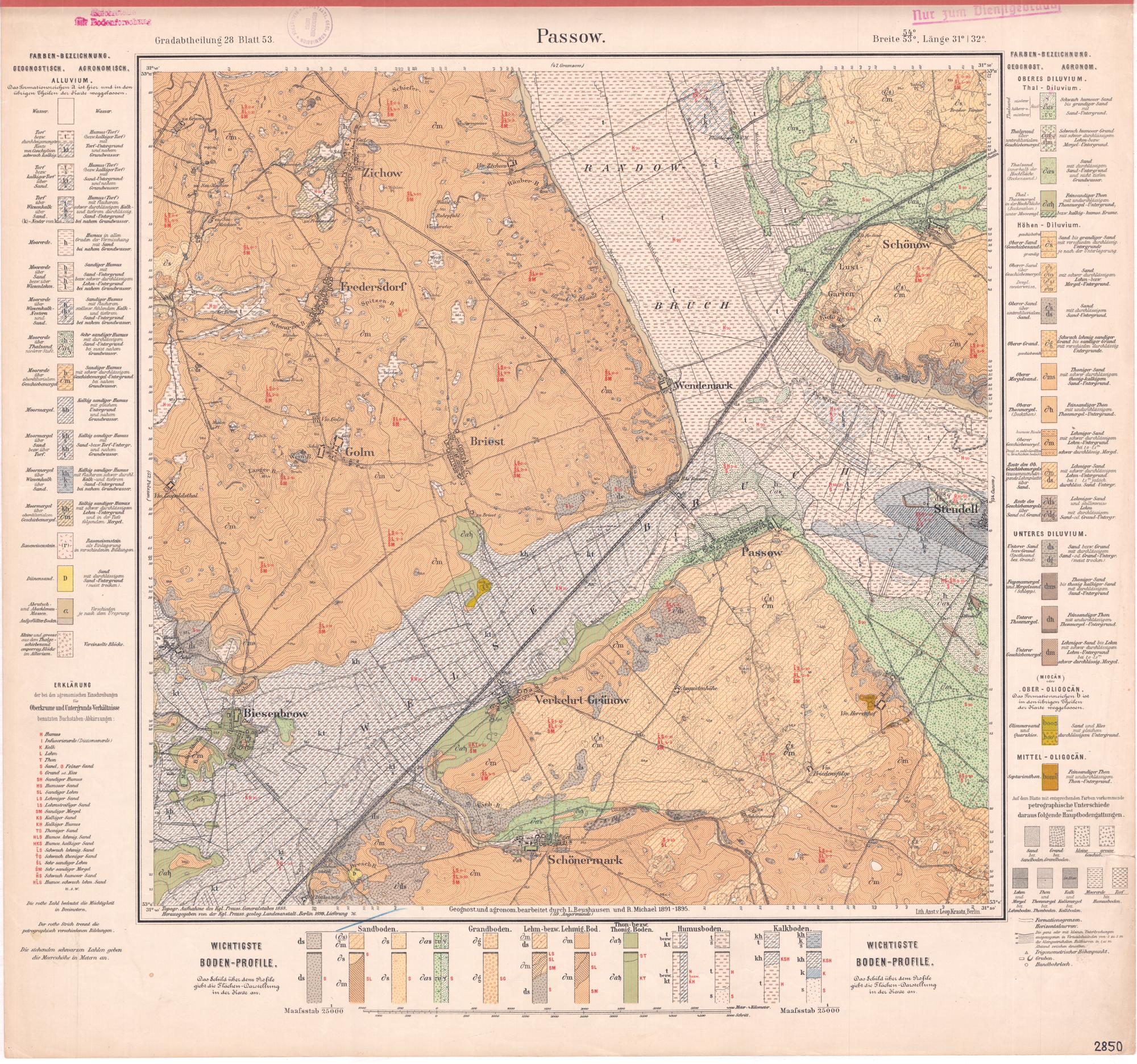Grad-Abtheilung 28, Blatt 53 [Neue Nr. 2850] (1899) Passow : geologische Karte / geognostisch und agronomisch bearb. durch L. Beushausen und R. Michael 1891-1895