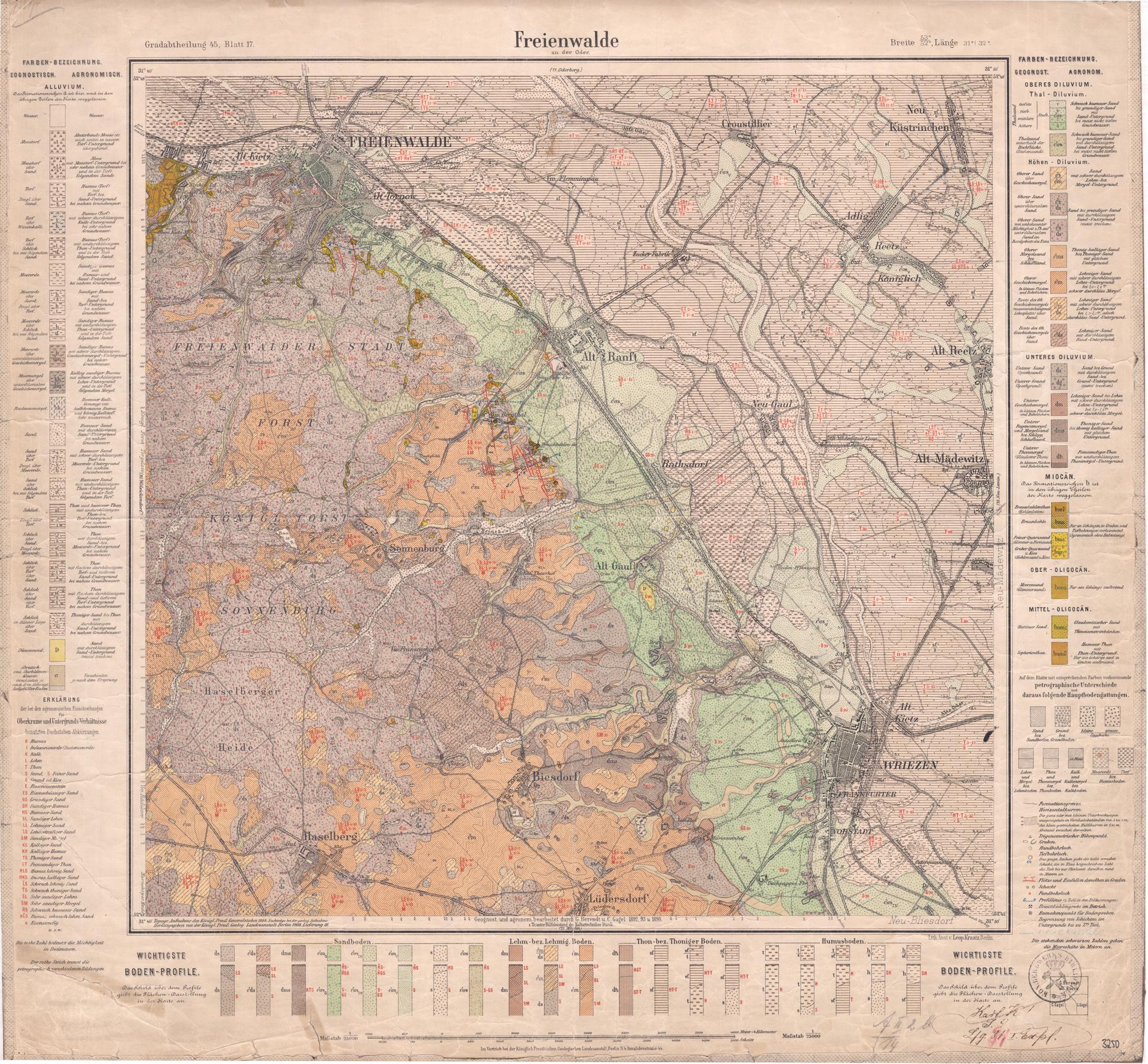 Grad-Abtheilung 45, Blatt 17 [Neue Nr. 3250] (1908) Freienwalde an der Oder / geognostisch und agronomisch bearb. durch G. Berendt und C. Gagel. Zum Theil unter Hülfeleistung des Kulturtechniker Burck