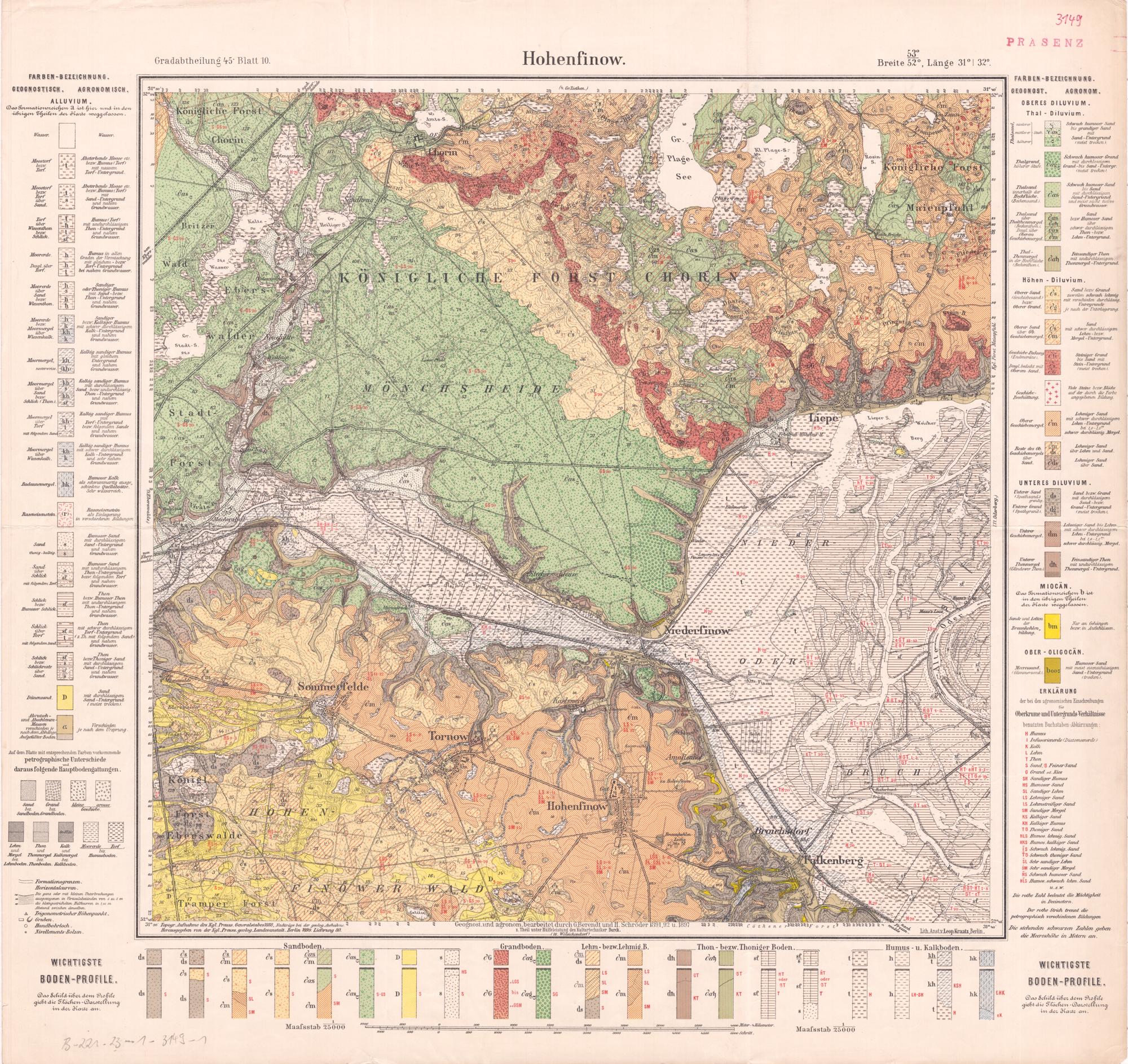 Grad-Abtheilung 45, Blatt 10 [Neue Nr. 3149] (1899) Hohenfinow : geologische Karte / geognostisch und agronomisch bearb. durch G. Berendt und H. Schröder 1891, 92 u. 1897