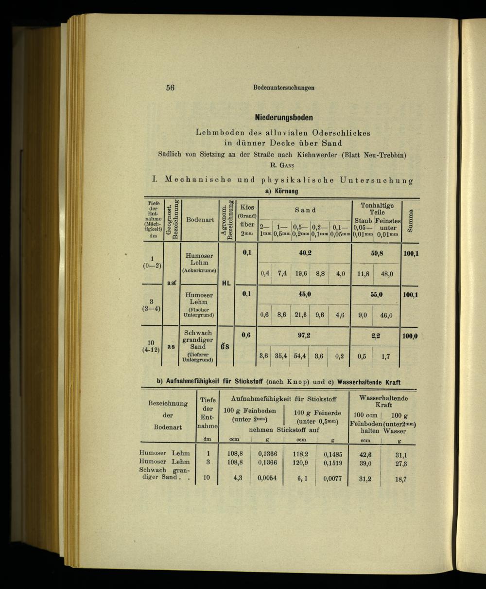 IV. Mechanische und chemische Bodenuntersuchungen