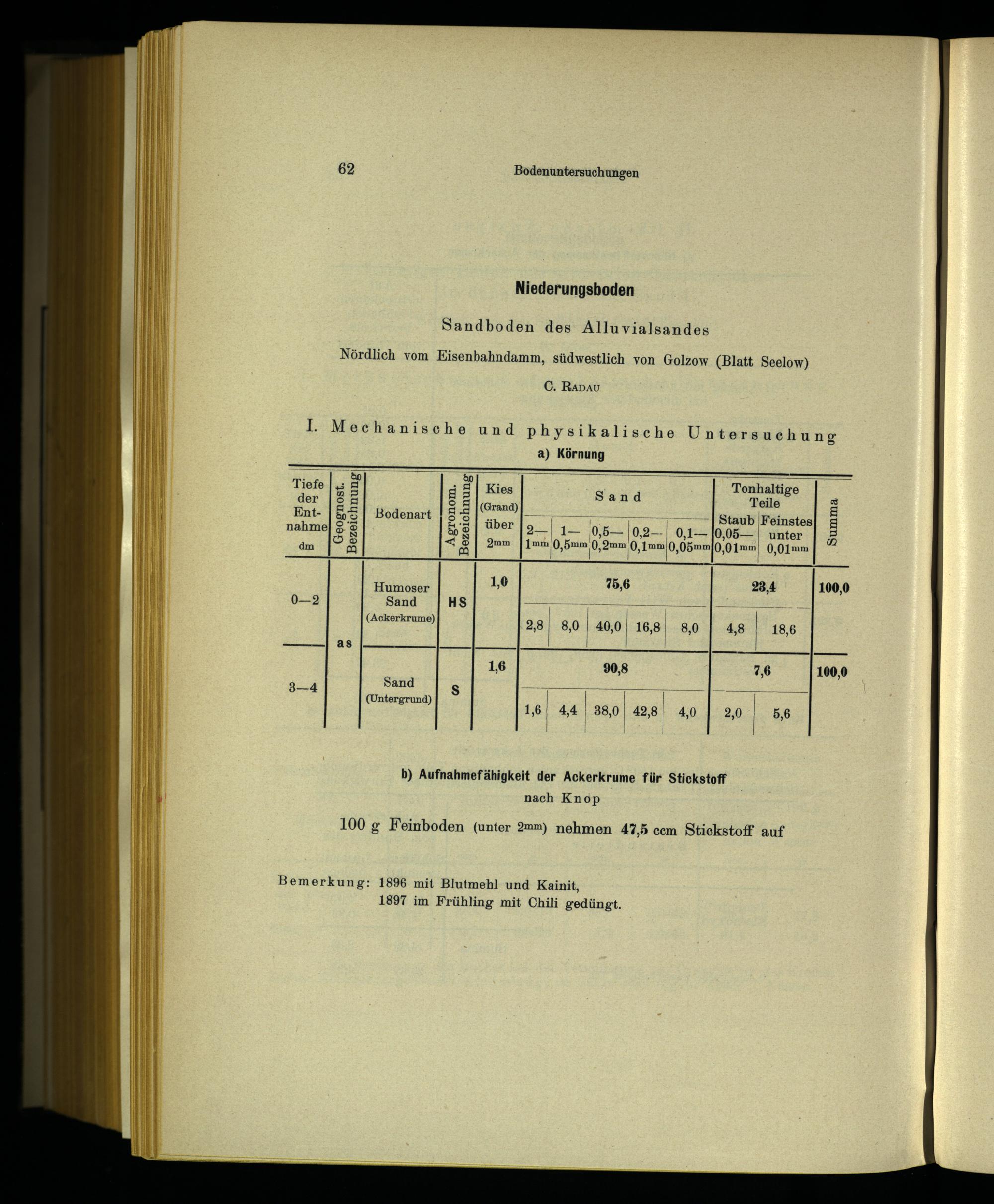 IV. Mechanische und chemische Bodenuntersuchungen