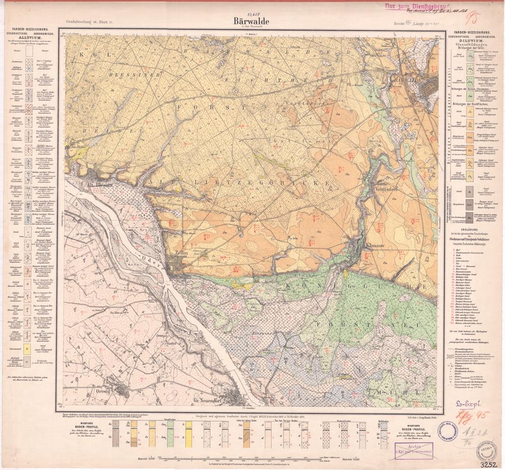 Grad-Abtheilung 46, Blatt 13 [Neue Nr. 3252] (1908) Bärwalde in der Neumark : geologische Karte / geognostisch und agronomisch bearb. durch C. Gagel, H. Schroeder und Th. Woelfer