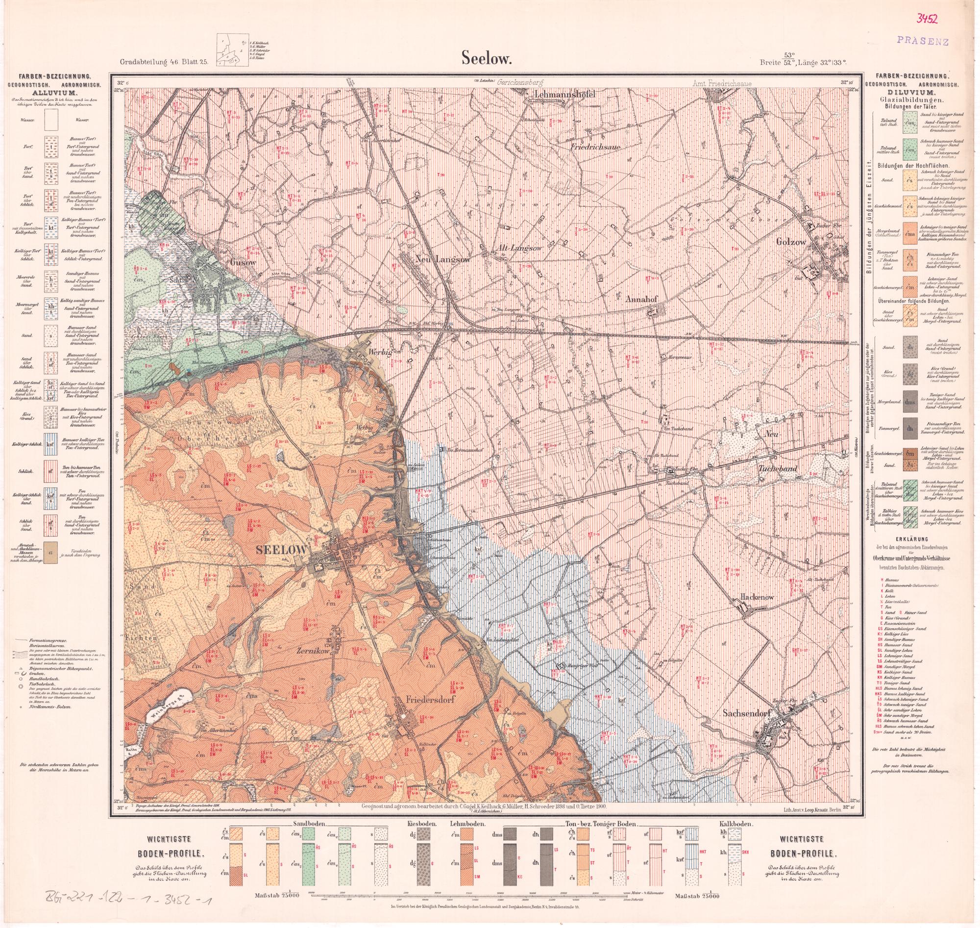 Grad-Abtheilung 46, Blatt 25 [Neue Nr. 3452] (1903) Seelow / geognostisch und agronomisch bearb. durch C. Gagel, K. Keilhack, G. Müller, H. Schroeder und O. Tietze